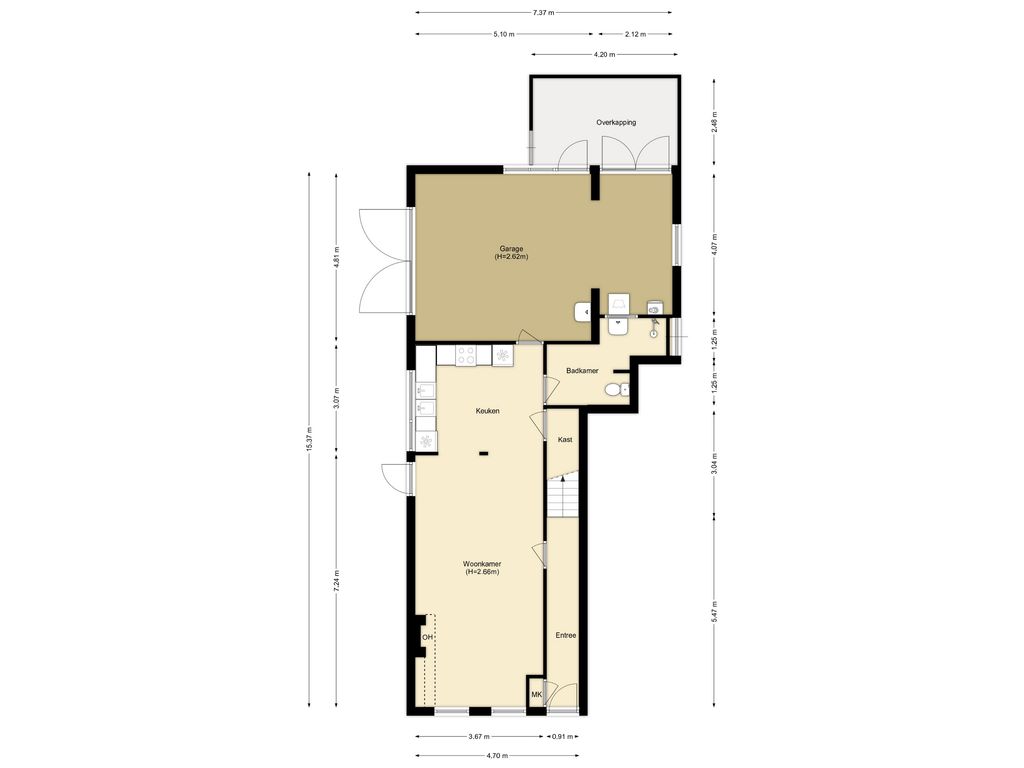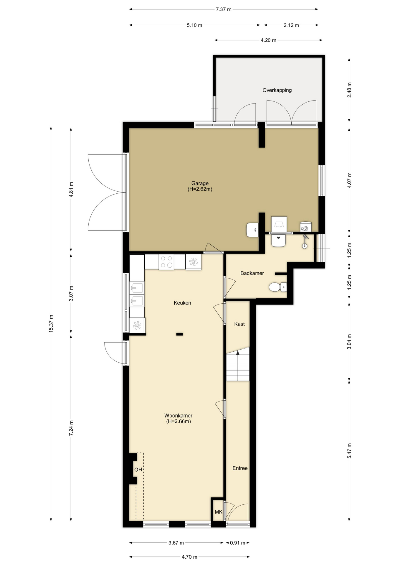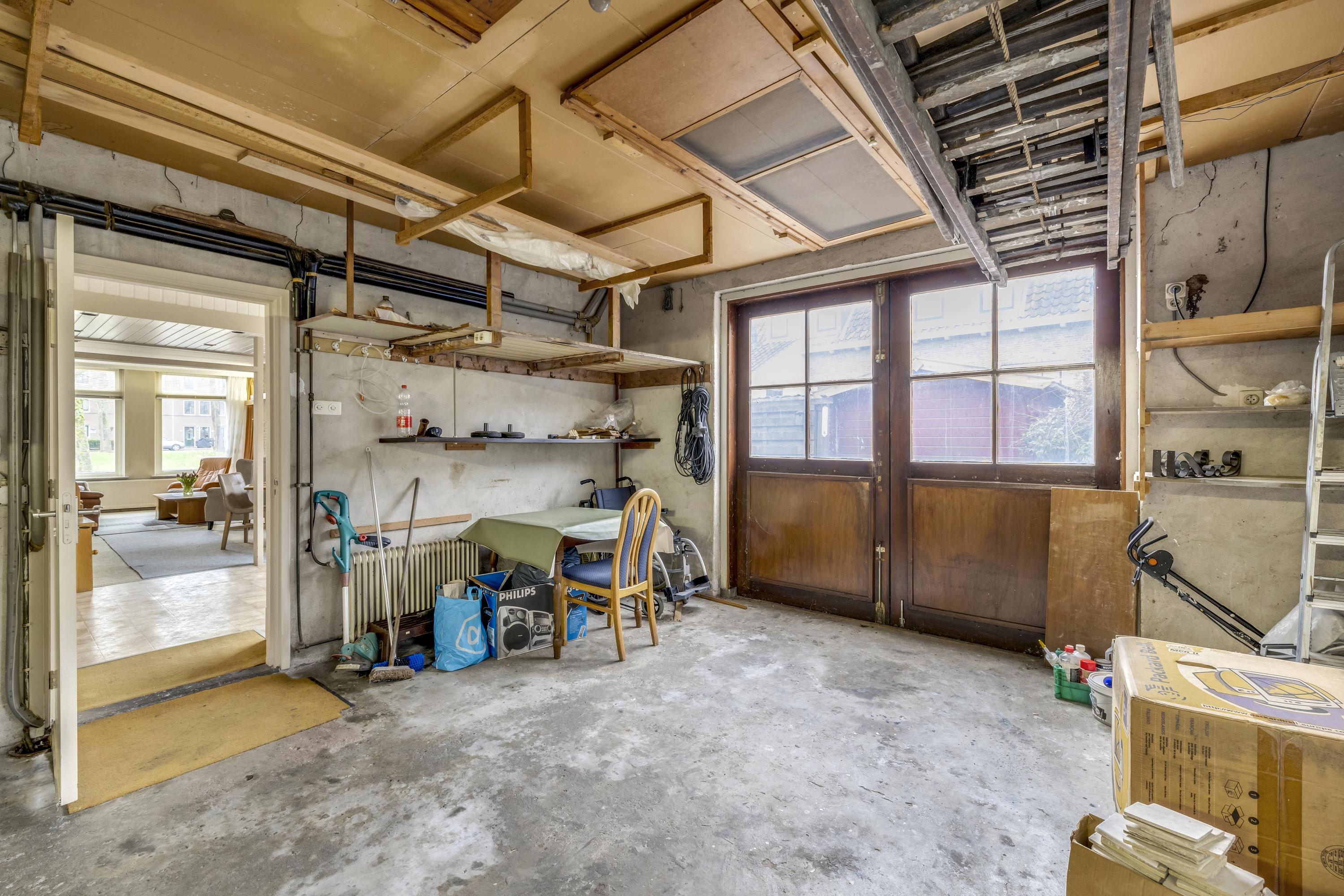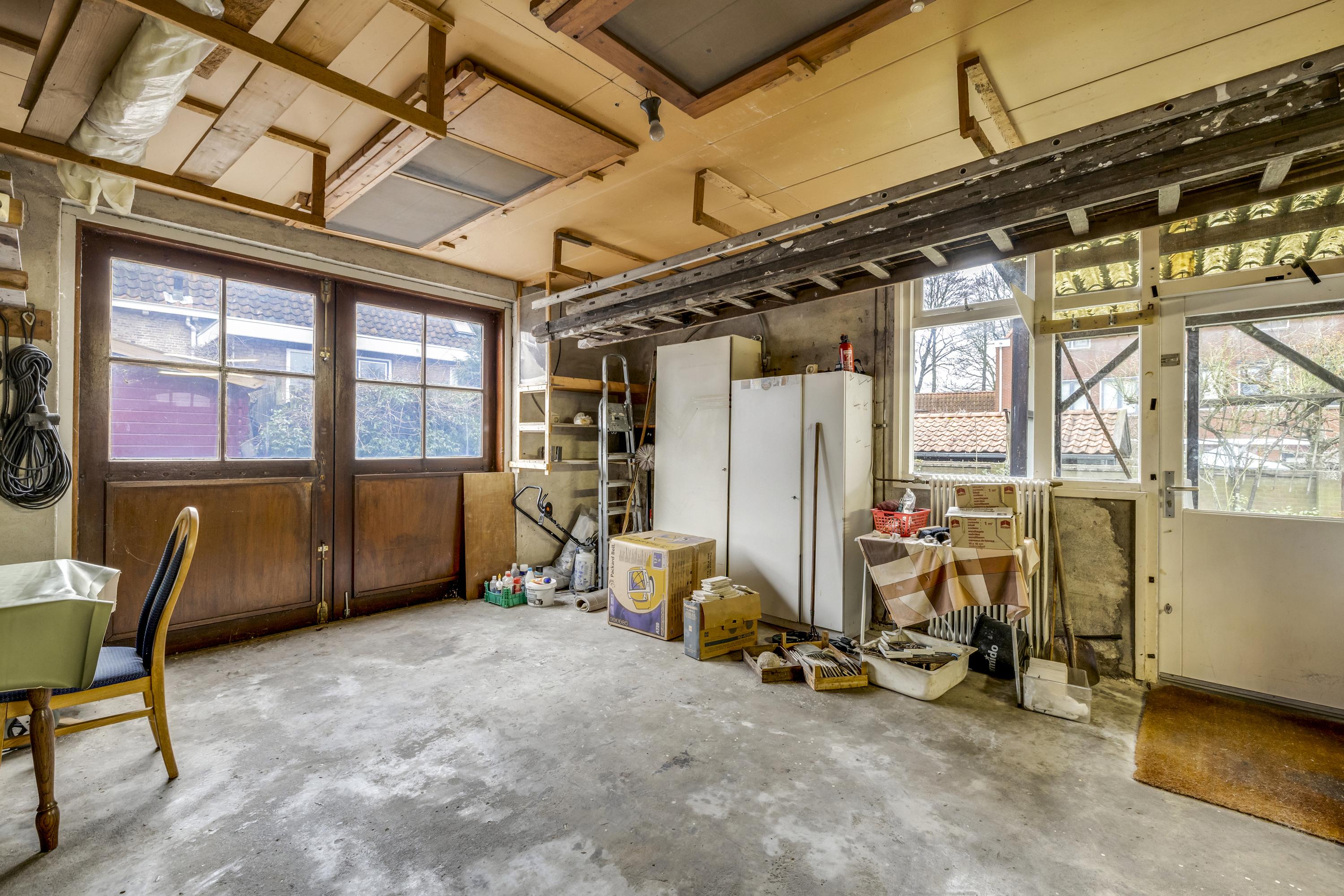 Royale inpandige garage/ hobbyruimte, deze is middels een verbouwing ook om te bouwen naar extra woonruimte. De garage is v.v. elektra, water en daglicht. Verder is deze uitgevoerd met een betonvloer en dubbele deur. In de garage is plaats voor het witgoed en de opstelplaats voor de CV ketel.