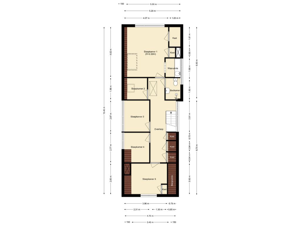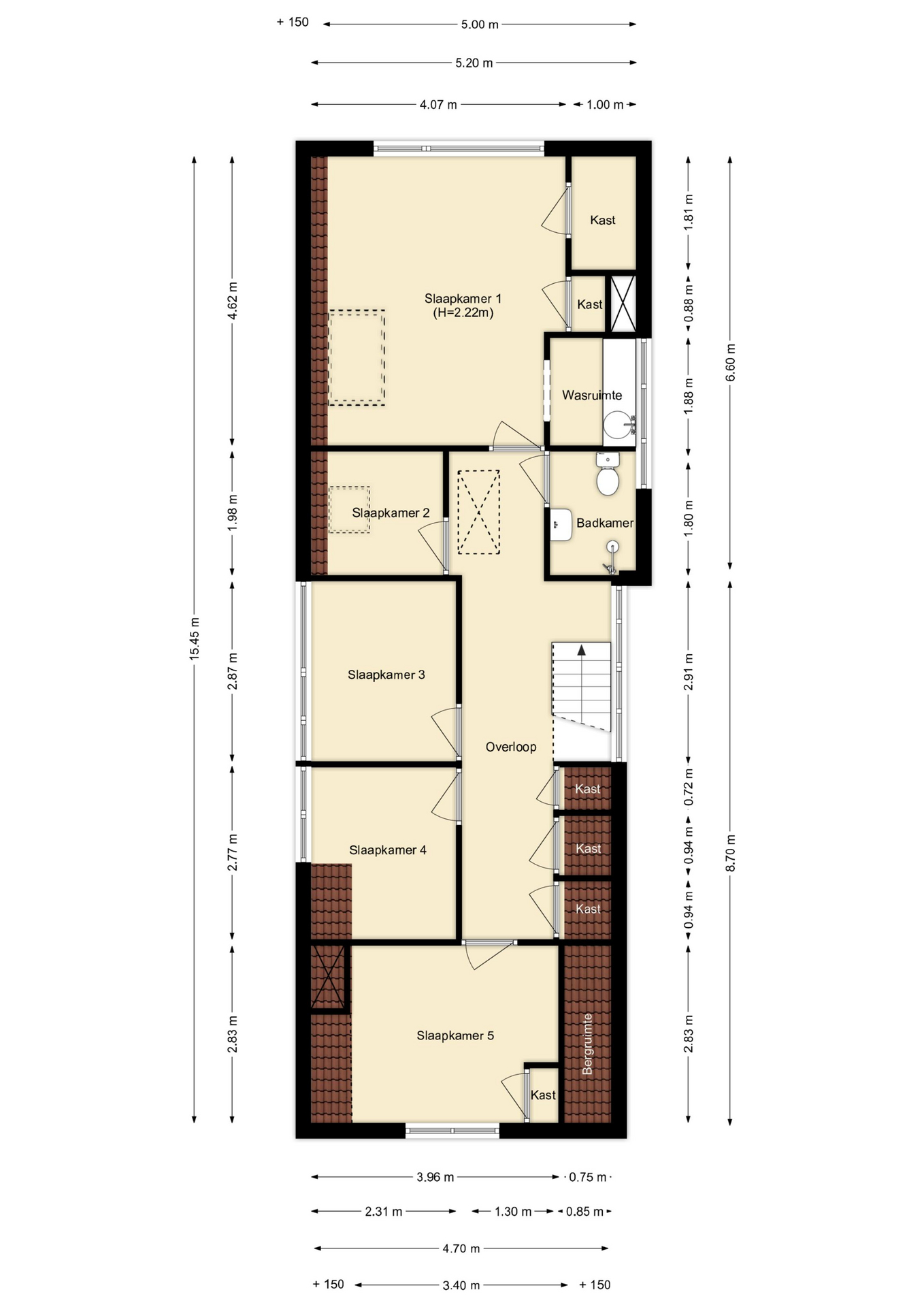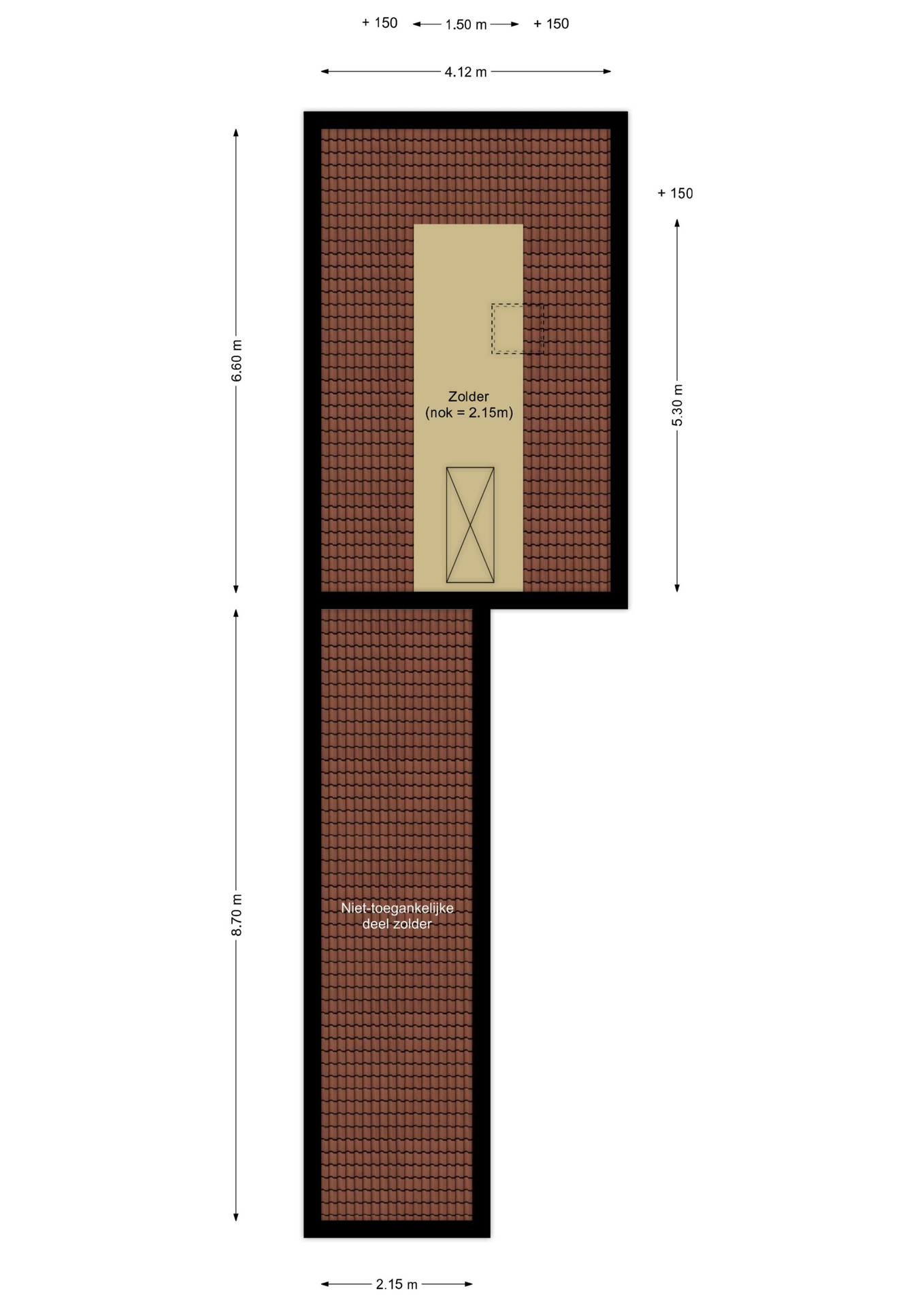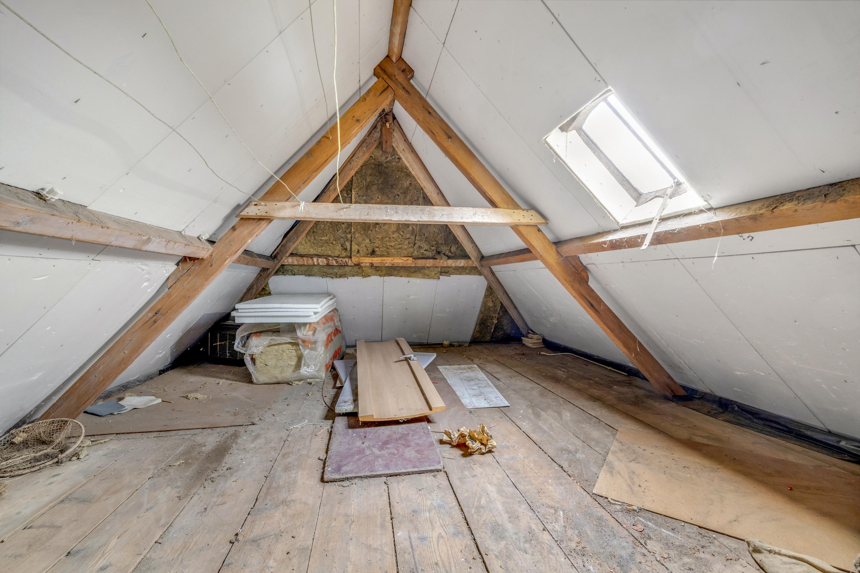 Via het luik op de overloop is de bergzolder te bereiken. Hier bevindt zich een dakraam.