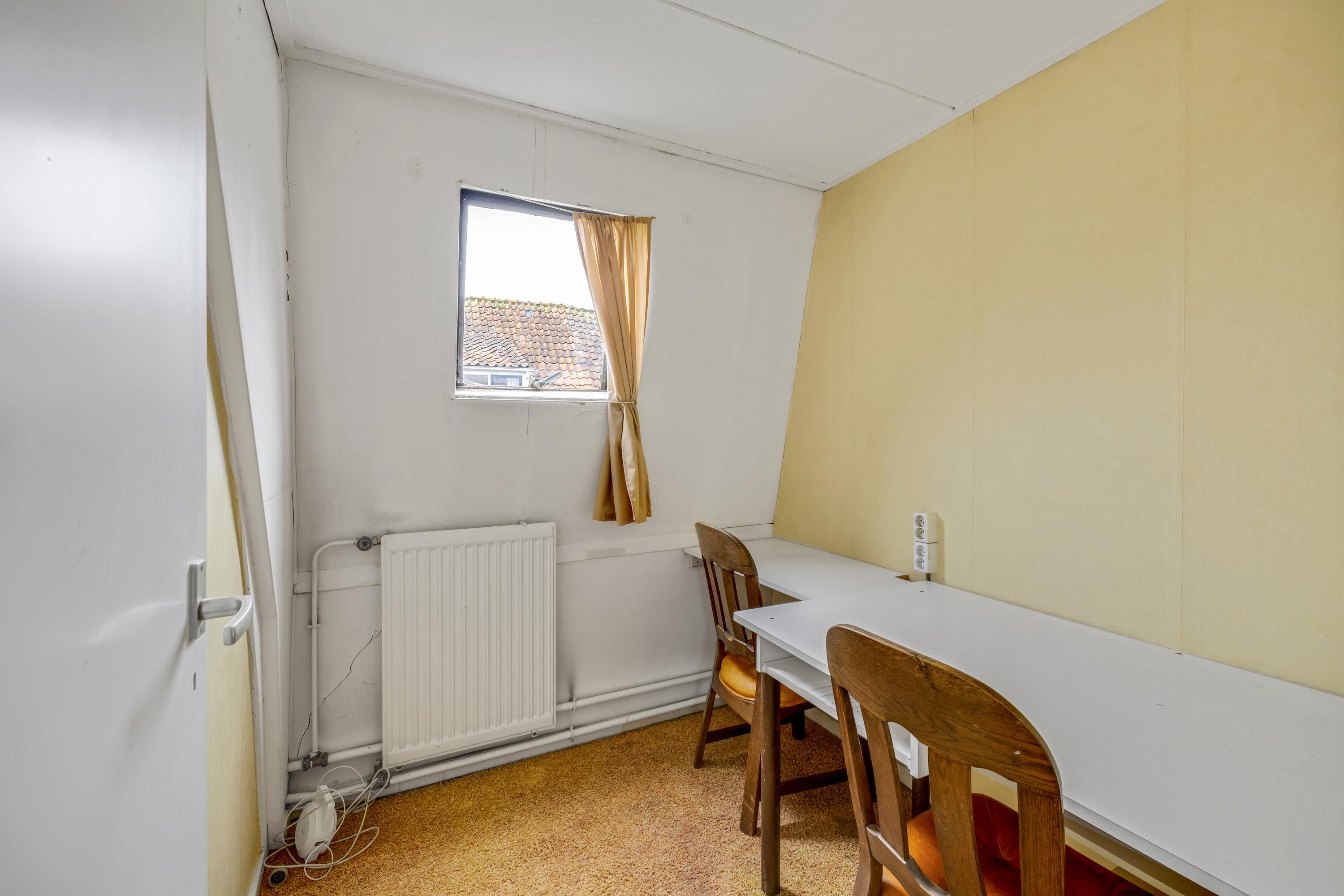 De slaapkamer/ werkkamer is gelegen aan de zijkant en beschikt over een dakraam.