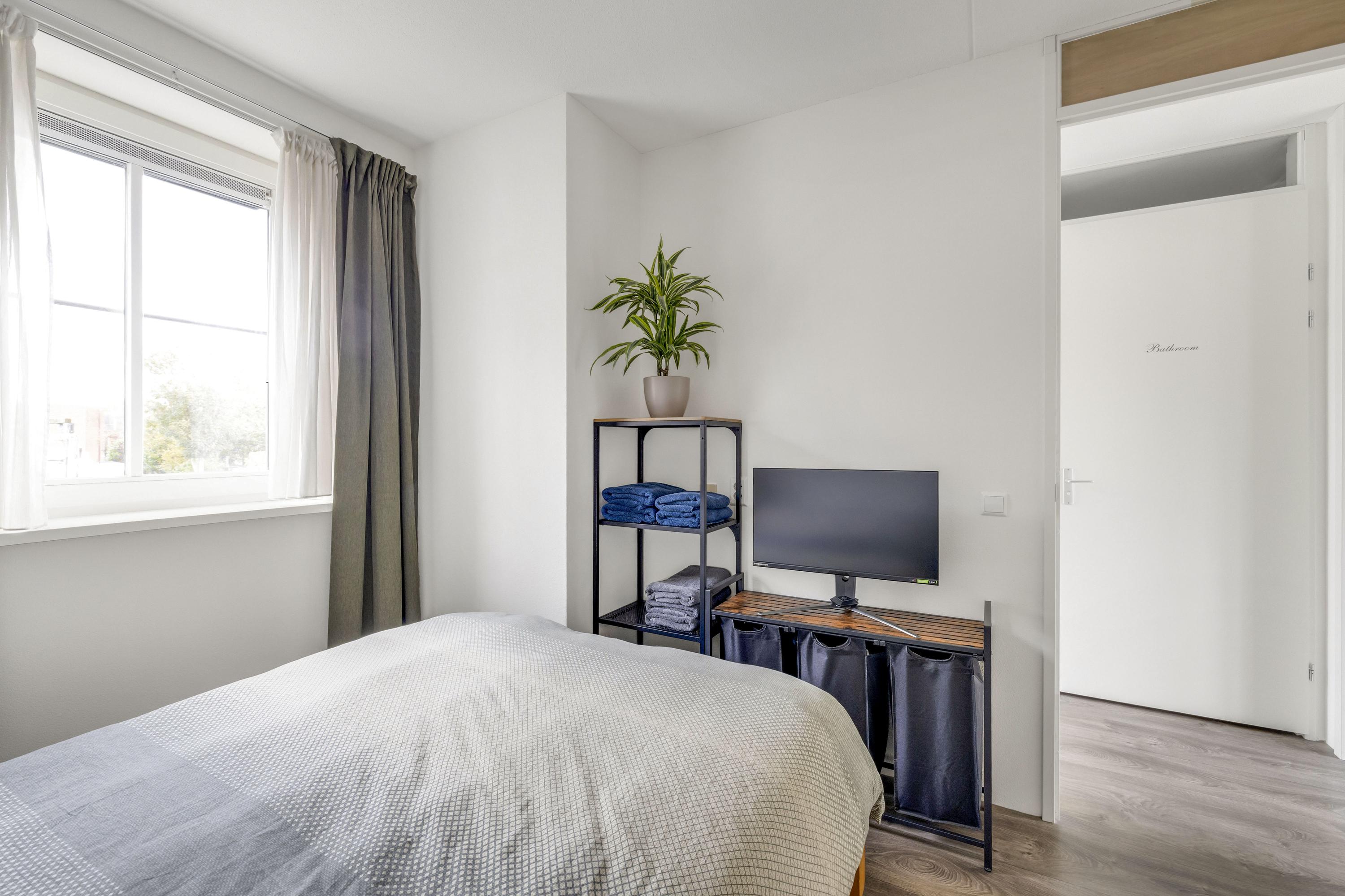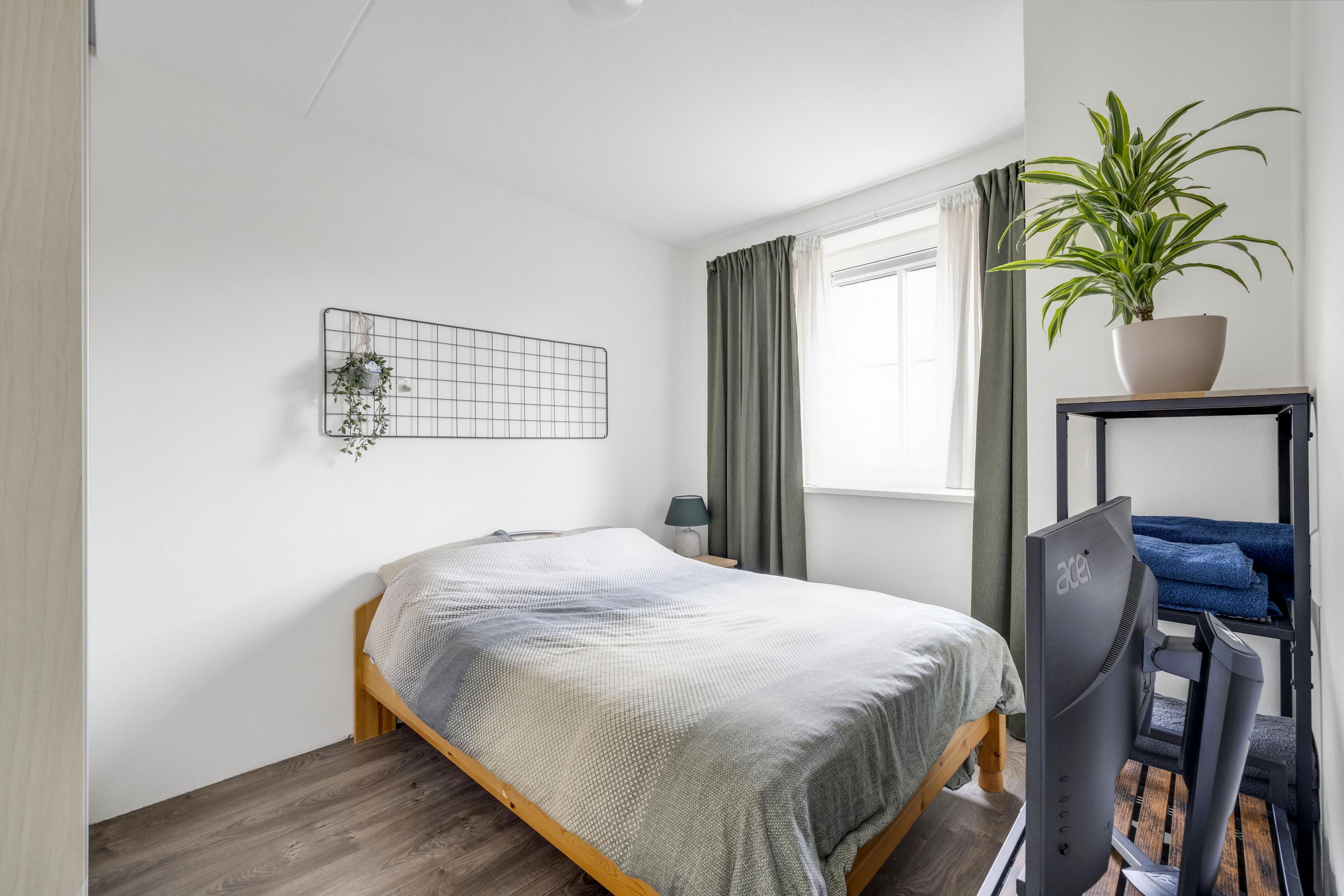 Ruime slaapkamer gelegen aan de achterzijde. Deze kamer is v.v. een kastenwand.