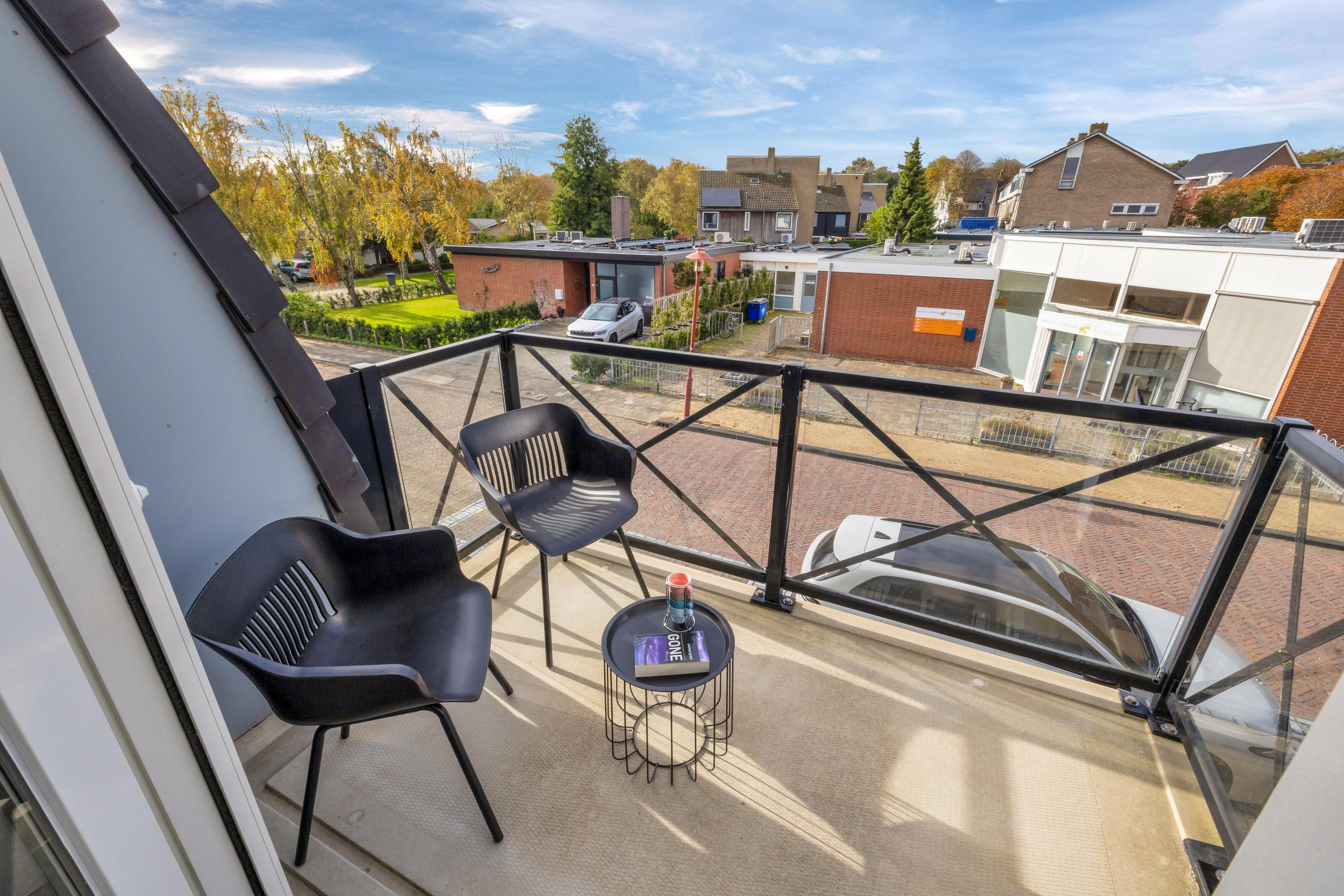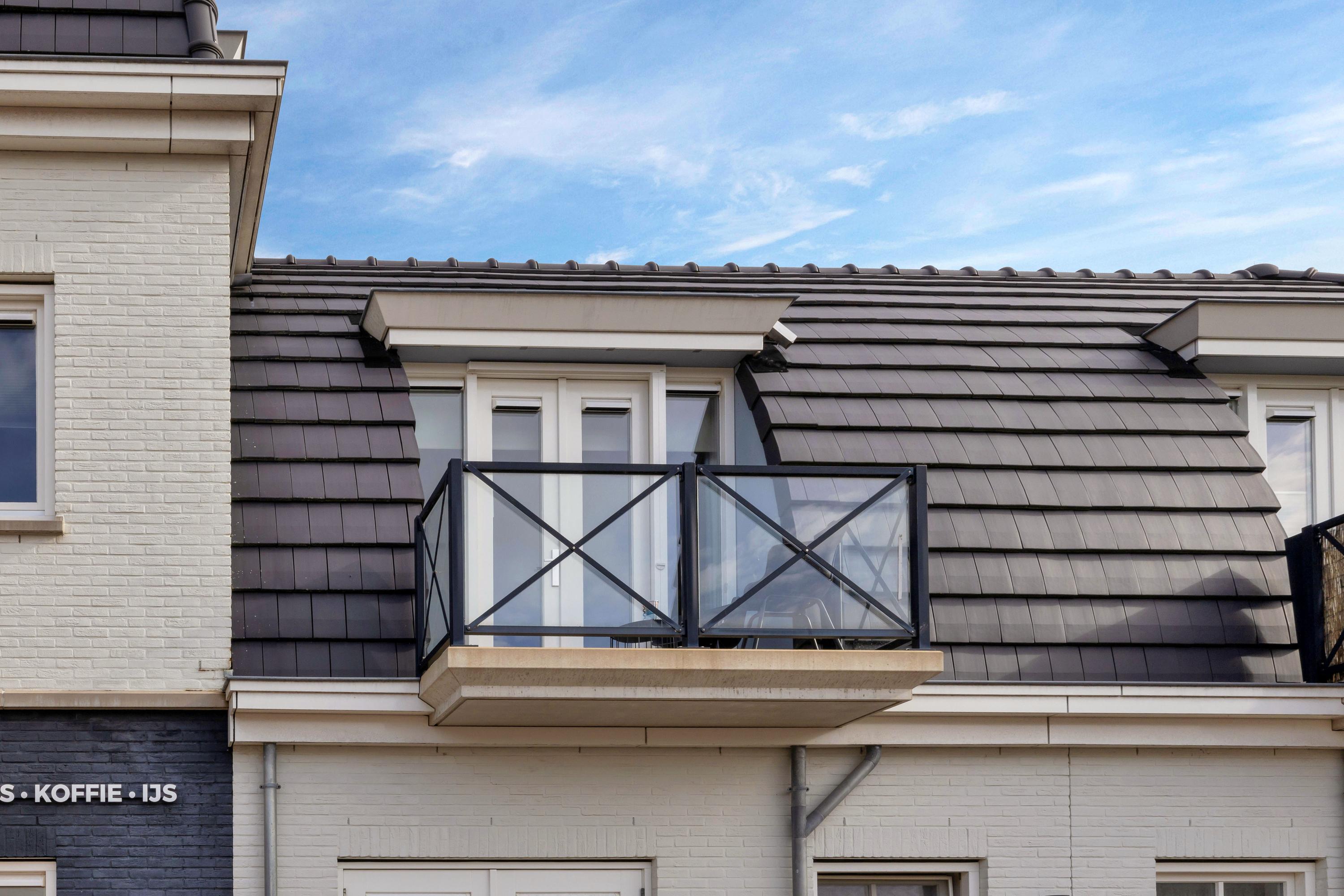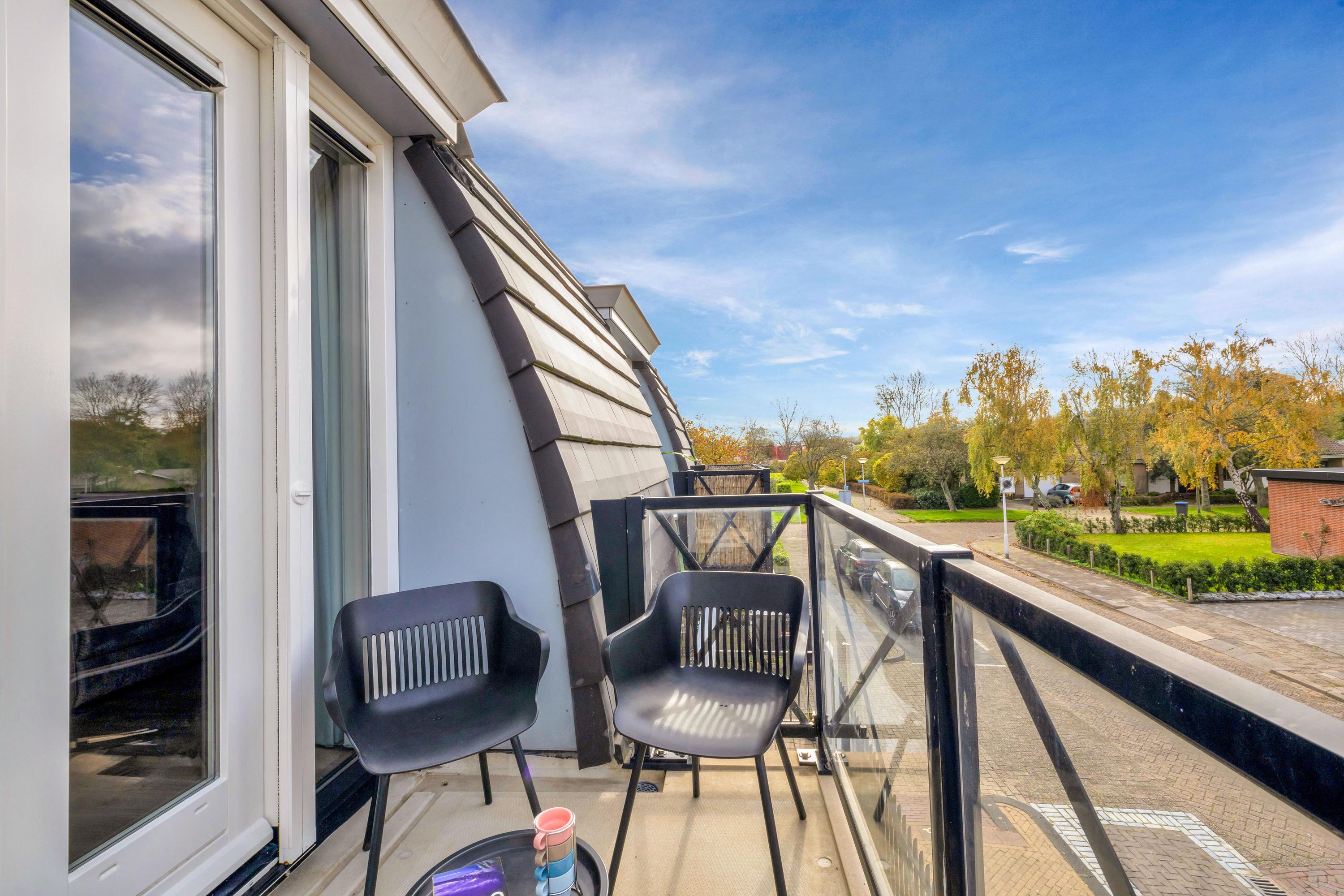 Het balkon bevindt zich aan de voorzijde van de woning.