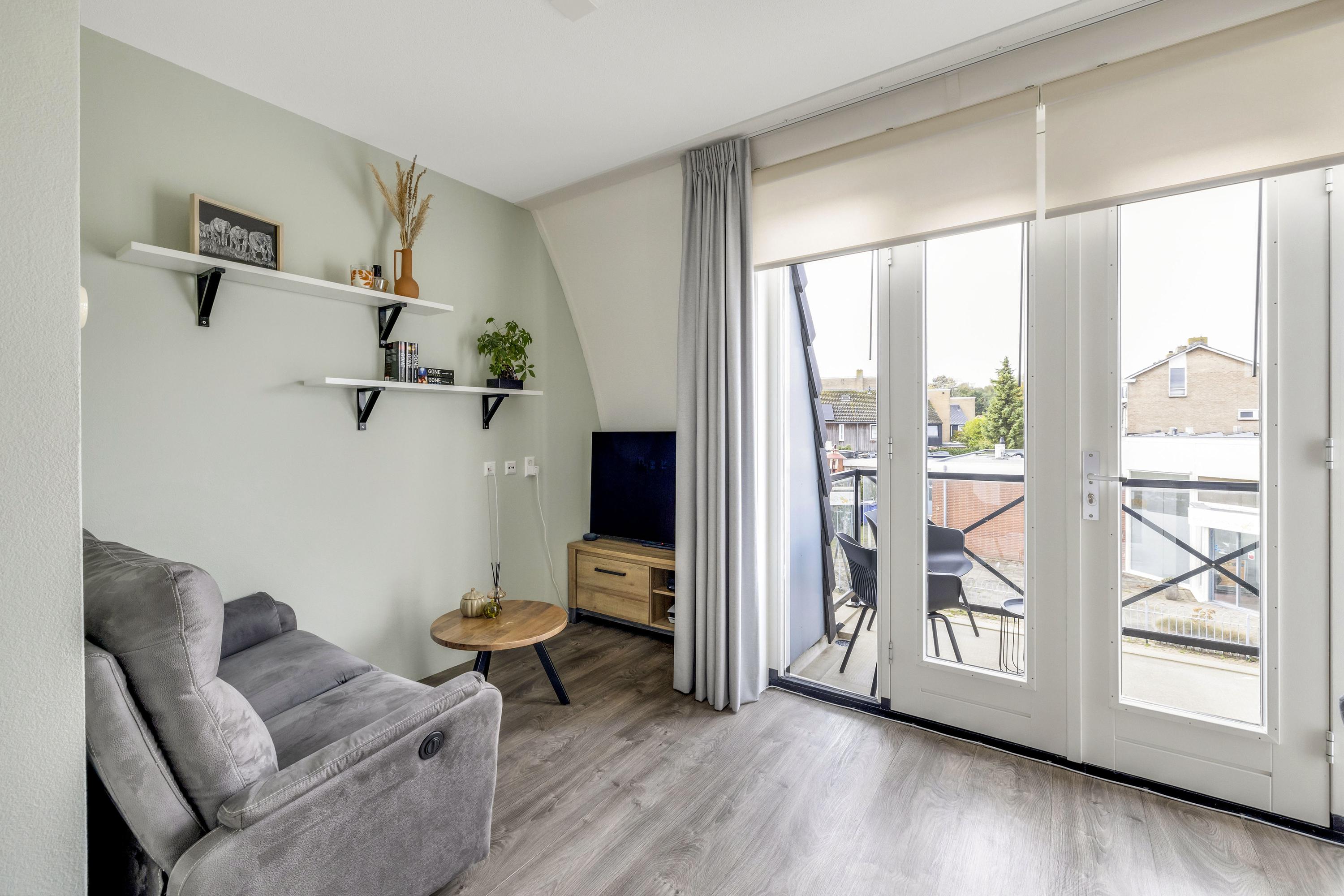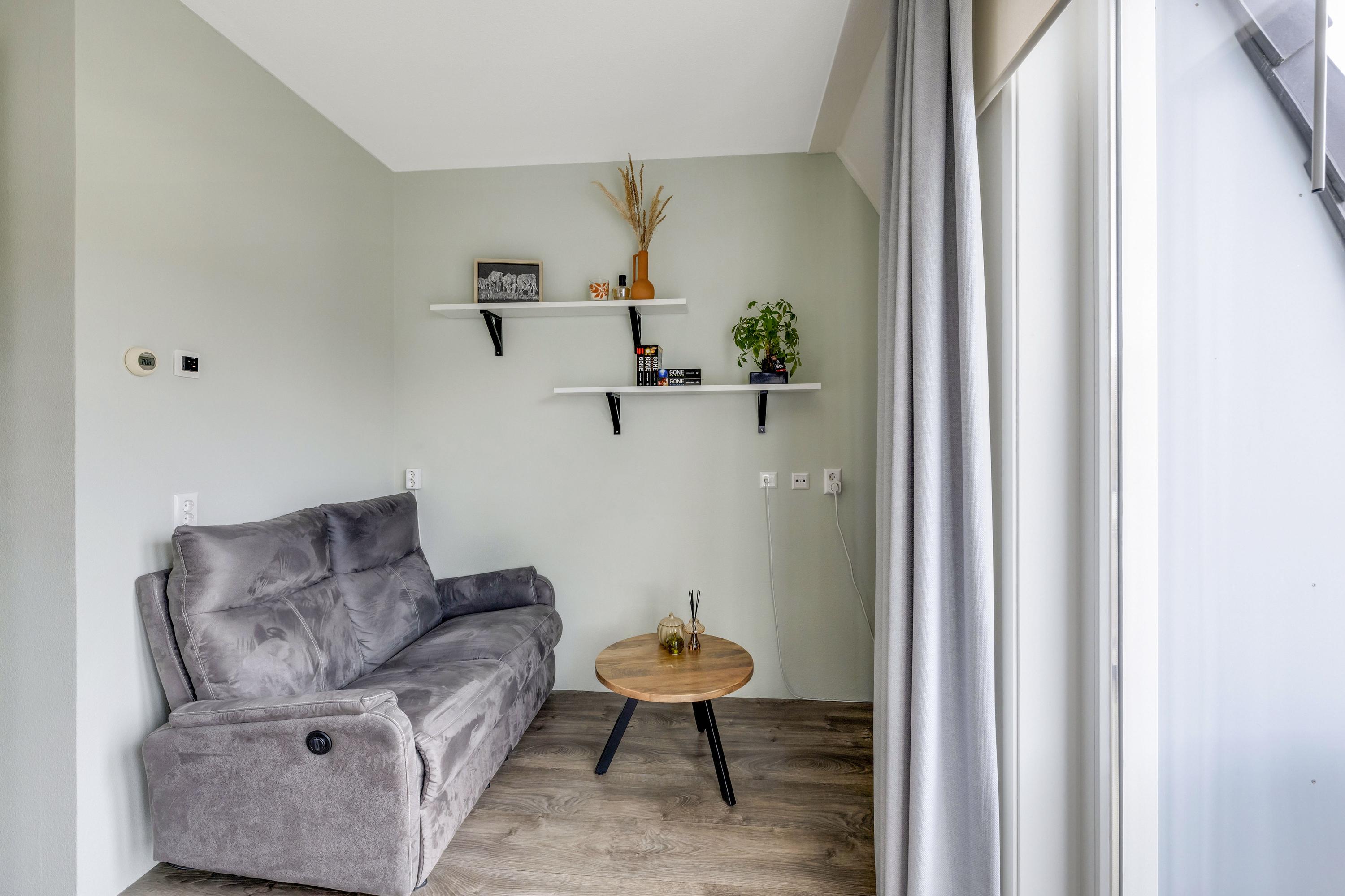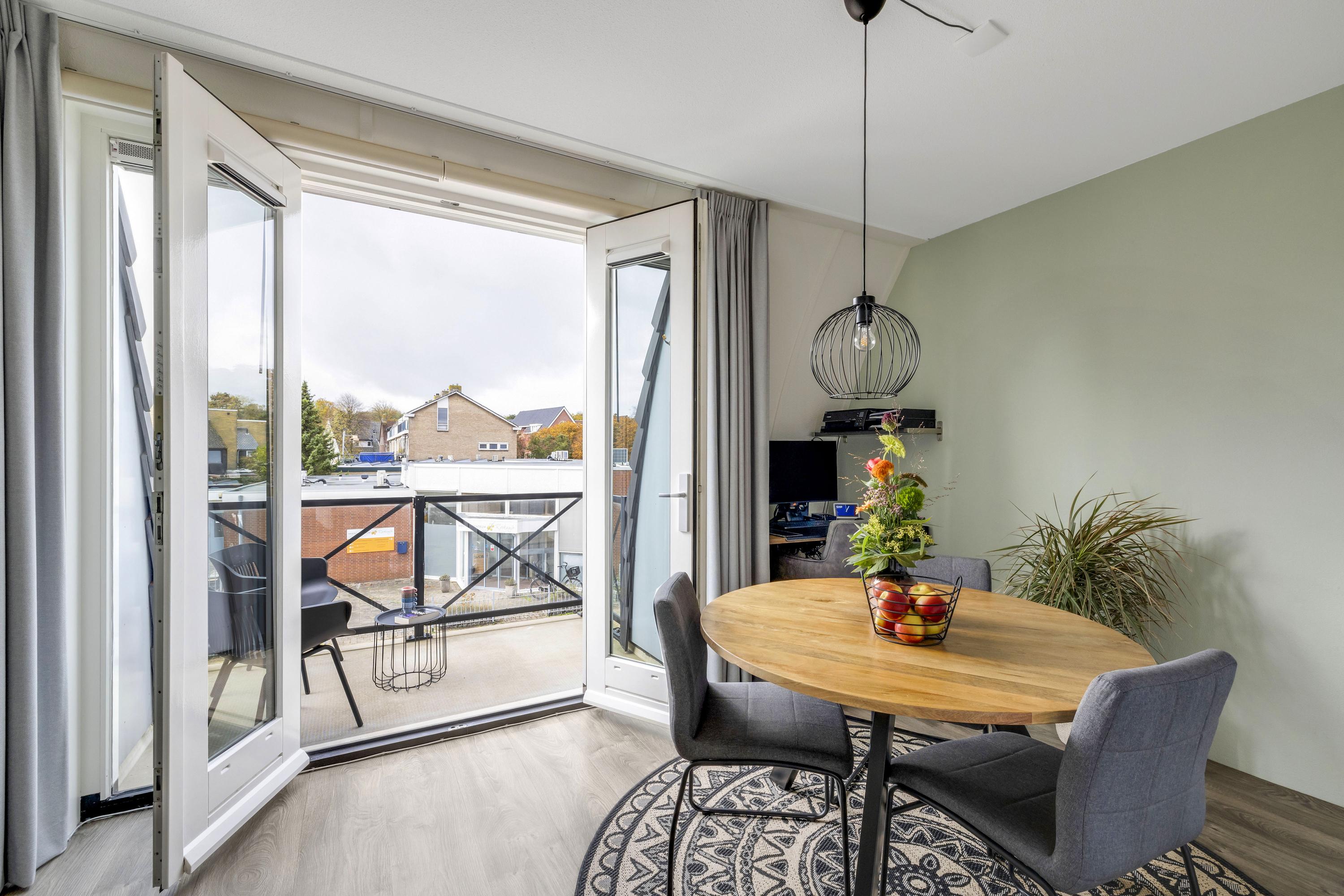Het balkon bevindt zich aan de voorzijde van de woning.