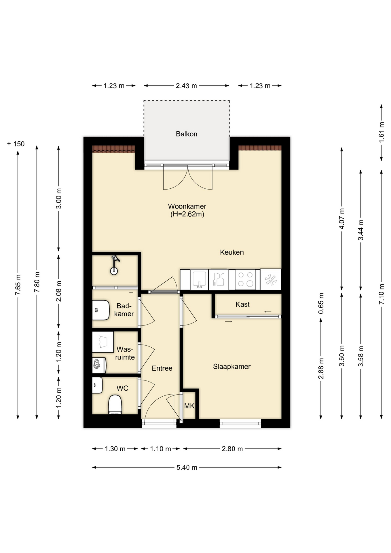 - woonoppervlakte 40 m2, balkon ca. 4 m2;