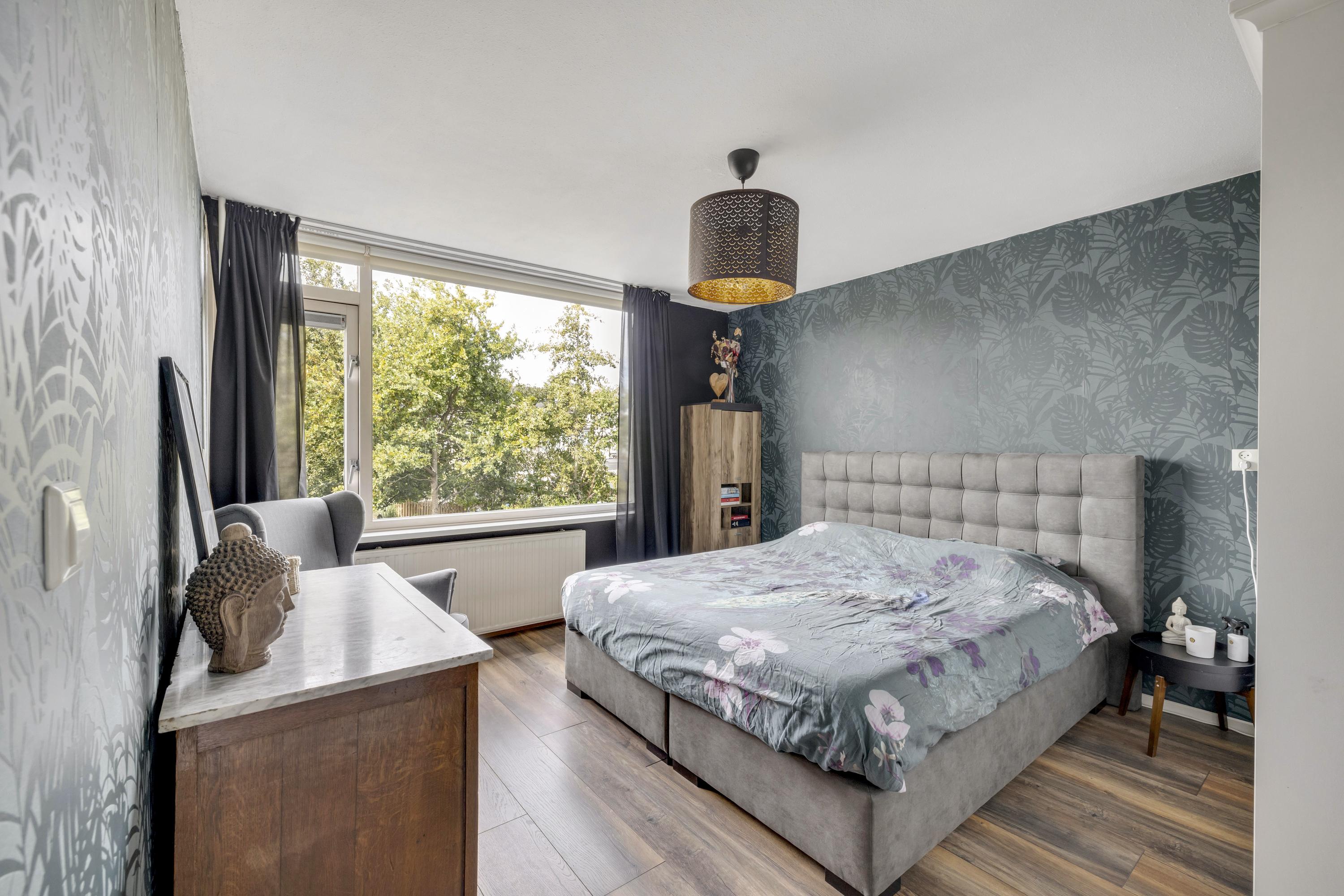 Deze ruime slaapkamer bevindt zich aan de voorzijde van de woning en is voorzien van laminaat.