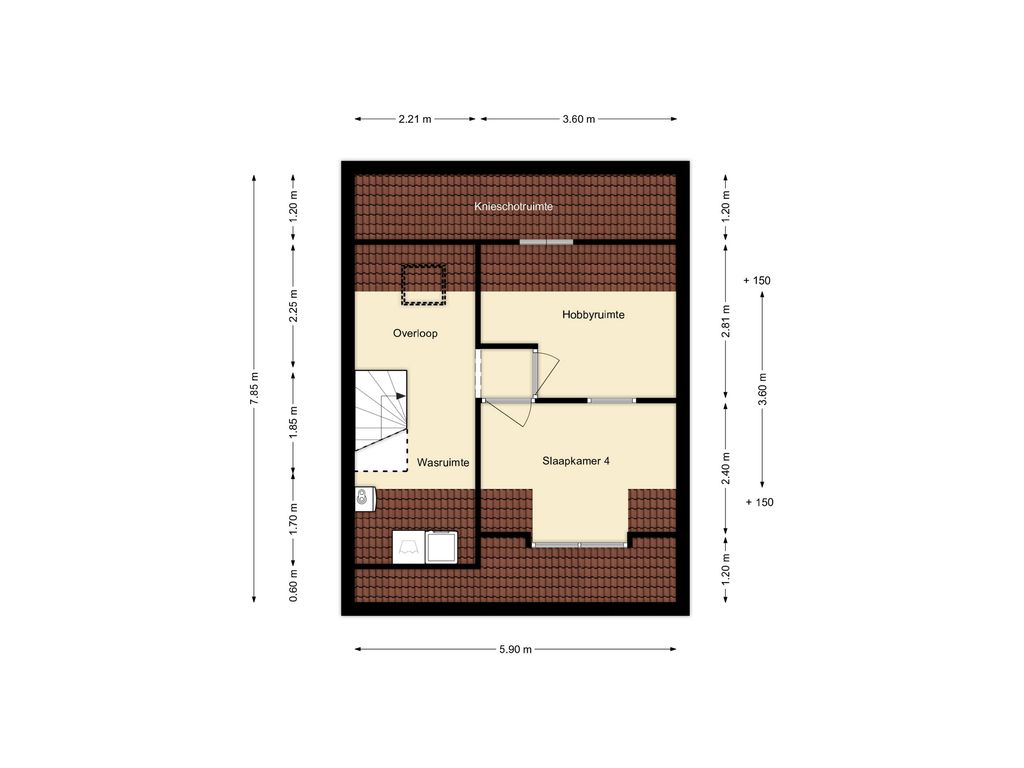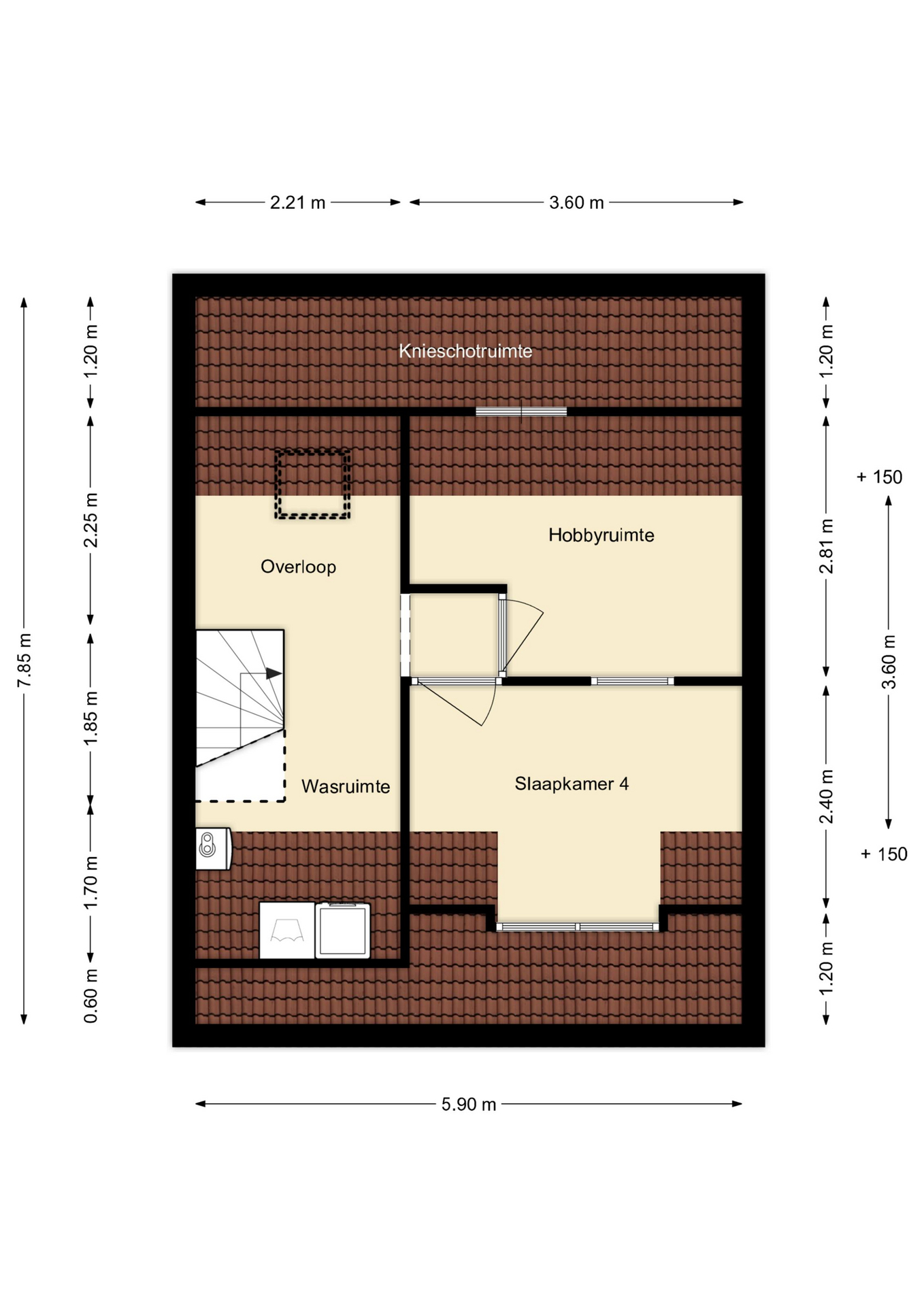 De voorzolder is v.v. een dakraam en de wasmachineaansluiting. Hier is tevens de opstelplaats voor de C.V.-ketel.