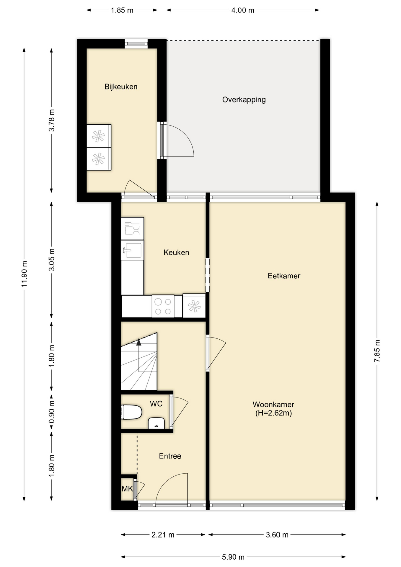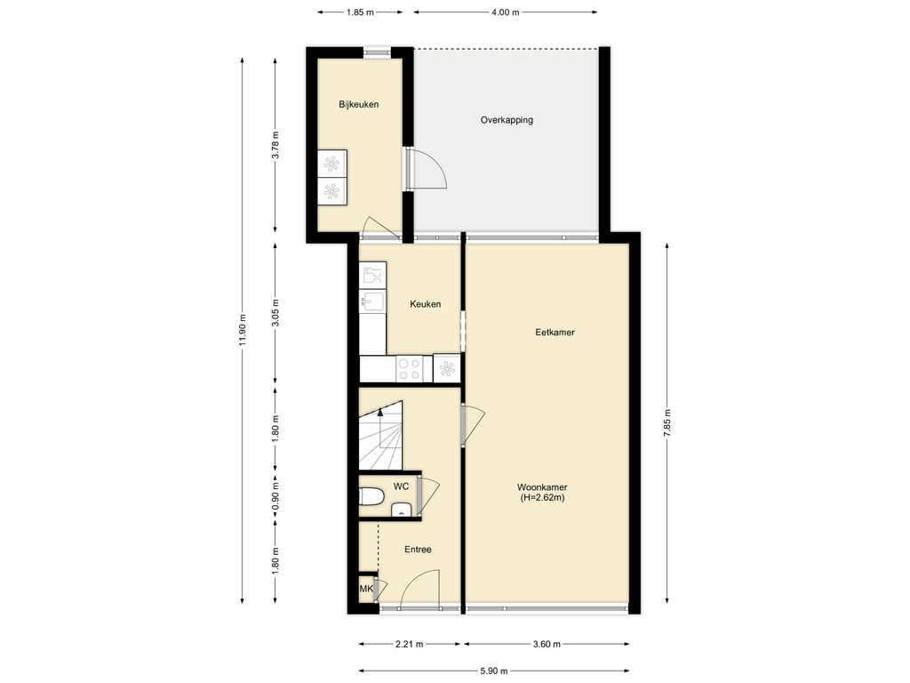 Bijkeuken - ca. 3.78 x 1.85 m