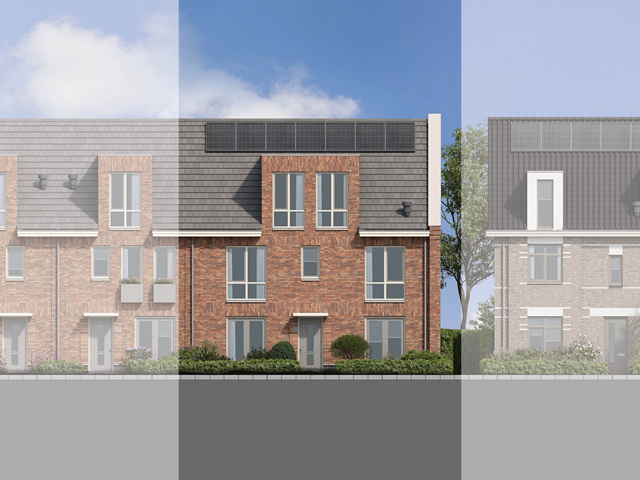 Aan de dijk van Buitenplaats Brielle liggen drie bijzondere woningen die direct in het oog springen. Door hun gedraaide ligging in het blok zijn ze breder dan lang, wat zorgt voor een verrassende en speelse indeling. De voordeur zit centraal in de voorgevel, waardoor er links en rechts twee volwaardige leefruimtes ontstaan: een ruime woonkamer aan de ene kant en een royale woonkeuken aan de andere. De rijke architectuur met warm metselwerk, dakkapellen en verfijnde details geeft deze woningen een warme, karakteristieke uitstraling. Hier woon je echt anders dan anders.