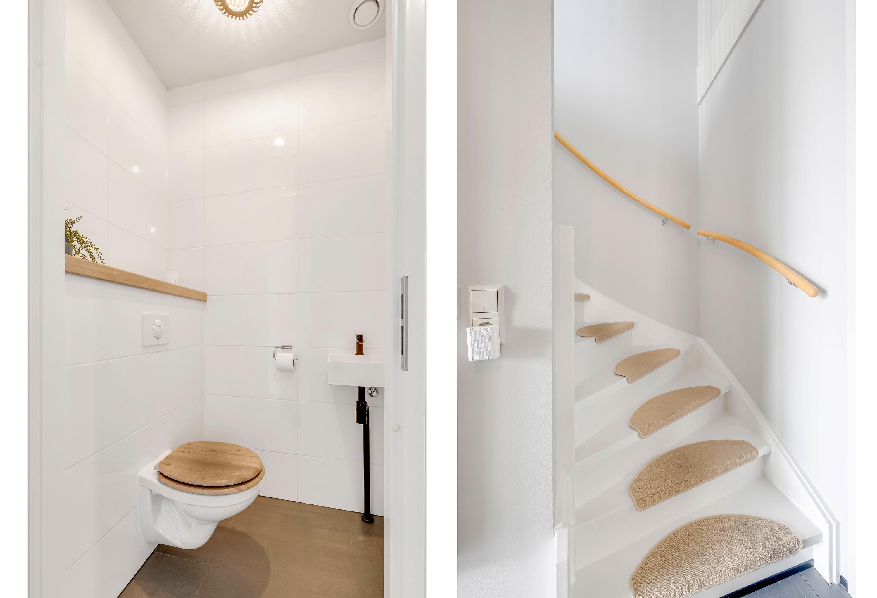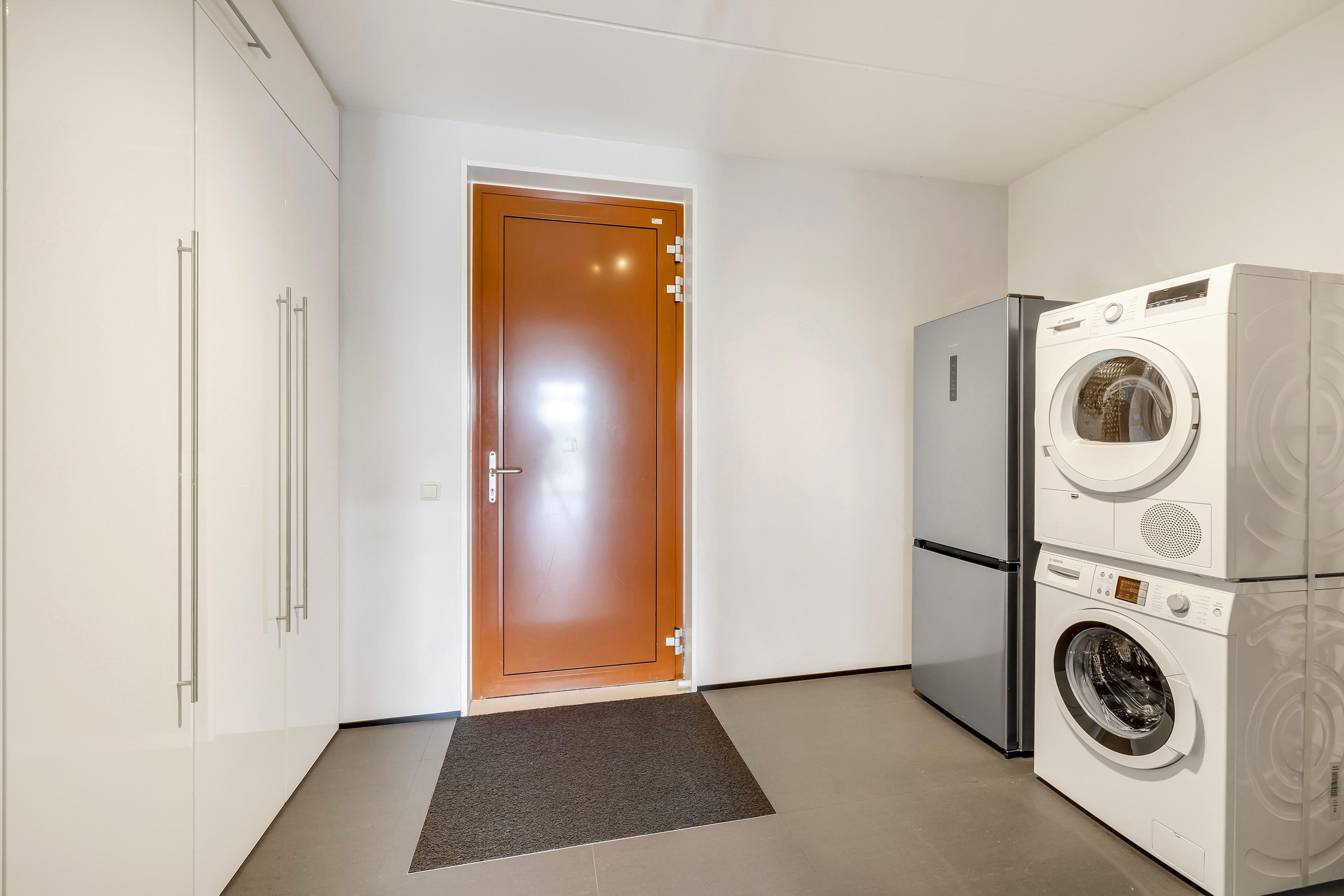 De moderne keuken, vernieuwd in 2024 en uitgevoerd in een strakke wandopstelling, is voorzien van een koelkast, oven, vaatwasser en een Bora inductiekookplaat met geïntegreerde afzuiging. De gehele begane grond is afgewerkt met een plavuizenvloer. Vanuit de hal bereik je tevens de berging/bijkeuken met vaste kastenwand, de opstelling van de cv-combiketel (Intergas, 2011), mechinische-ventilatieunit (2022), waterontharder en de aansluitingen voor de wasmachine en droger. Vanuit deze ruimte is er ook een deur naar buitne die uitkomt aan de voorzijde van de woning.
