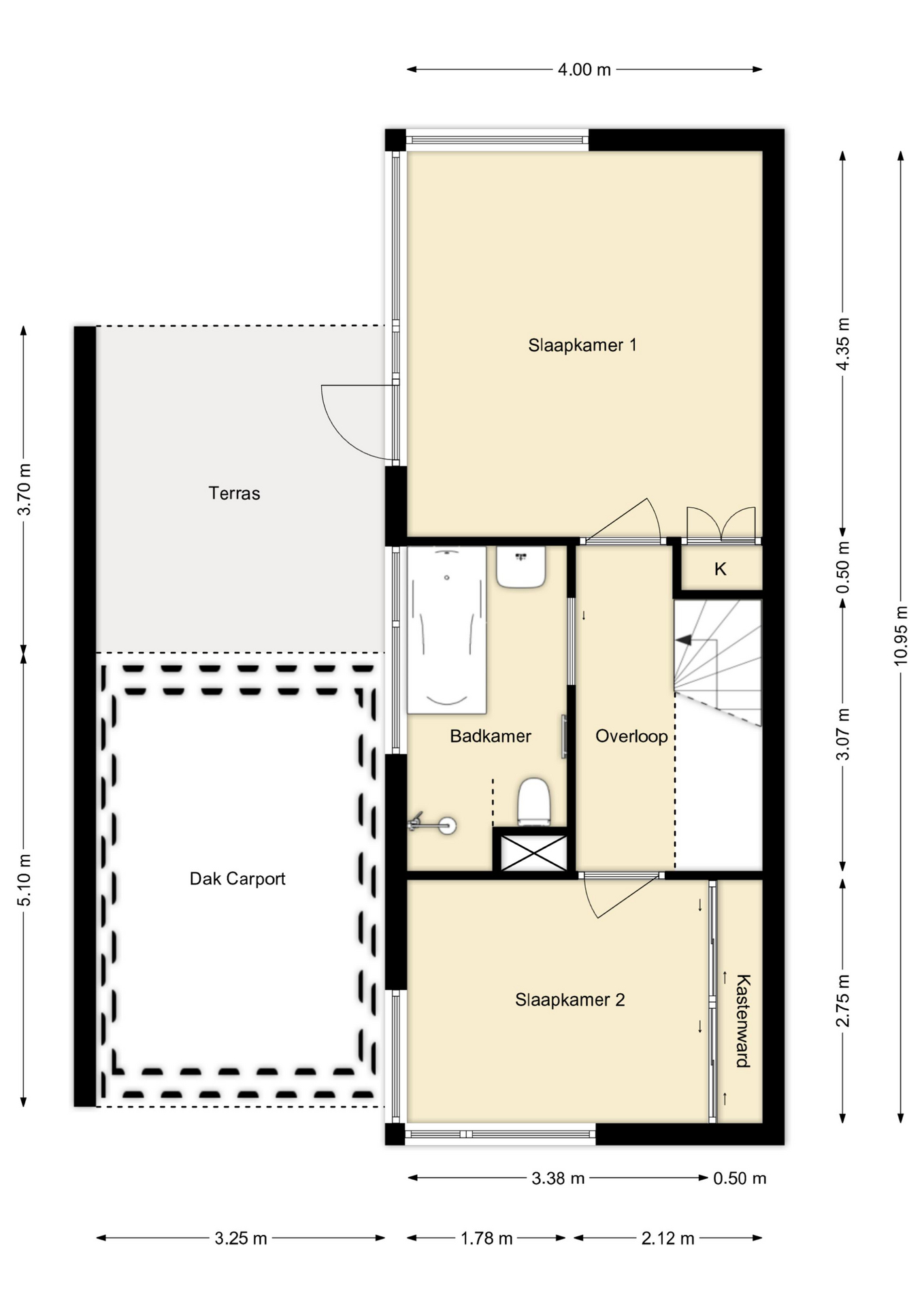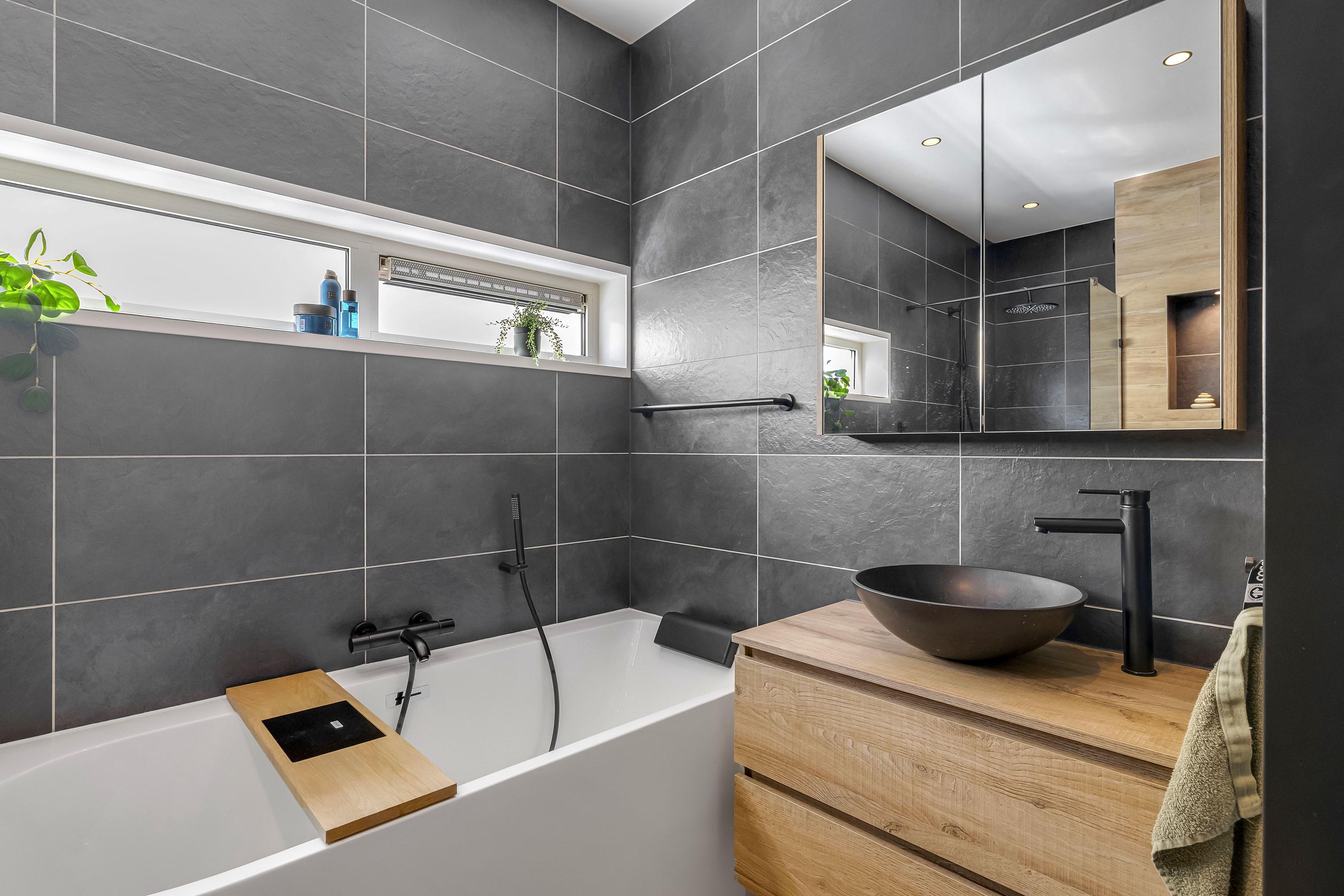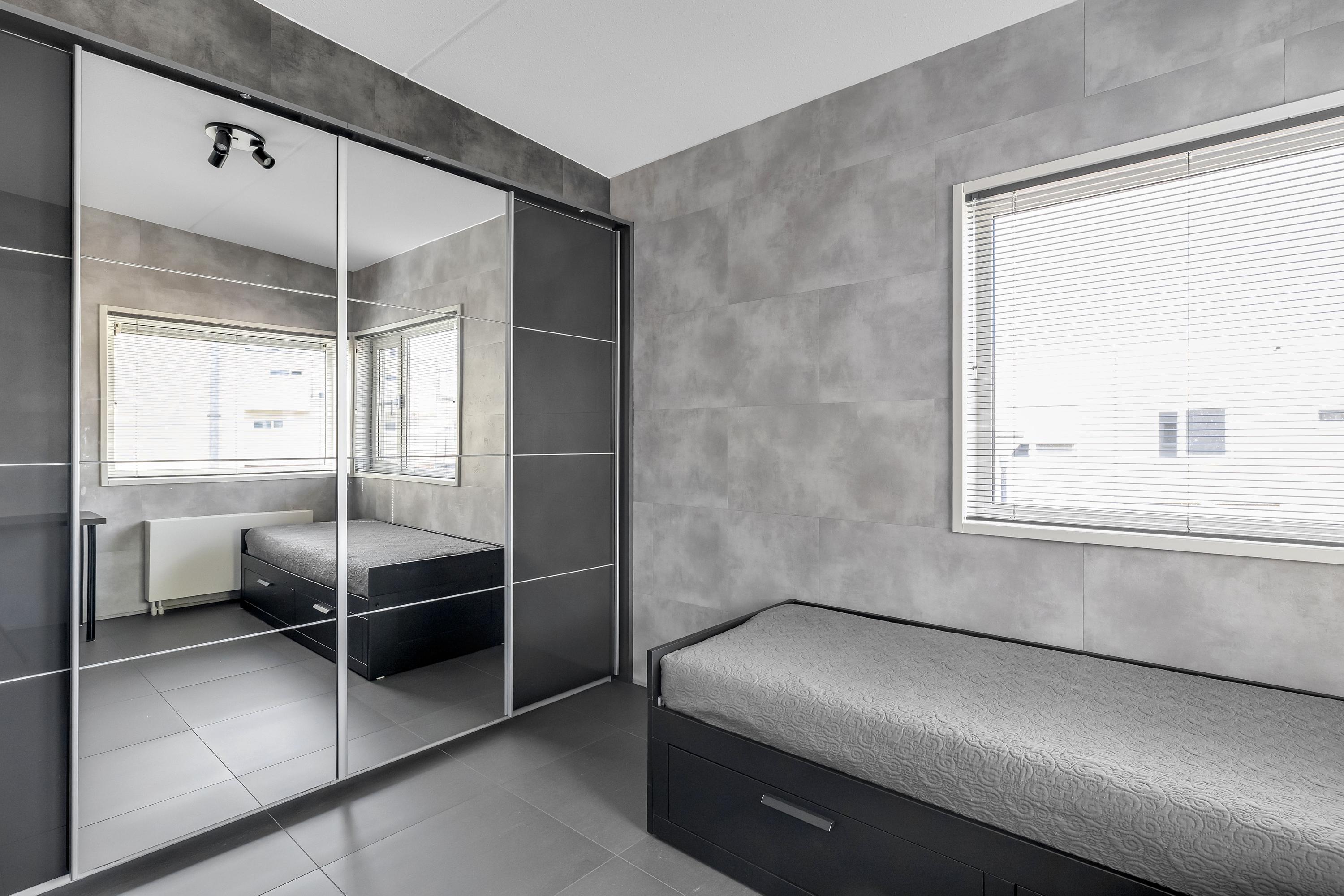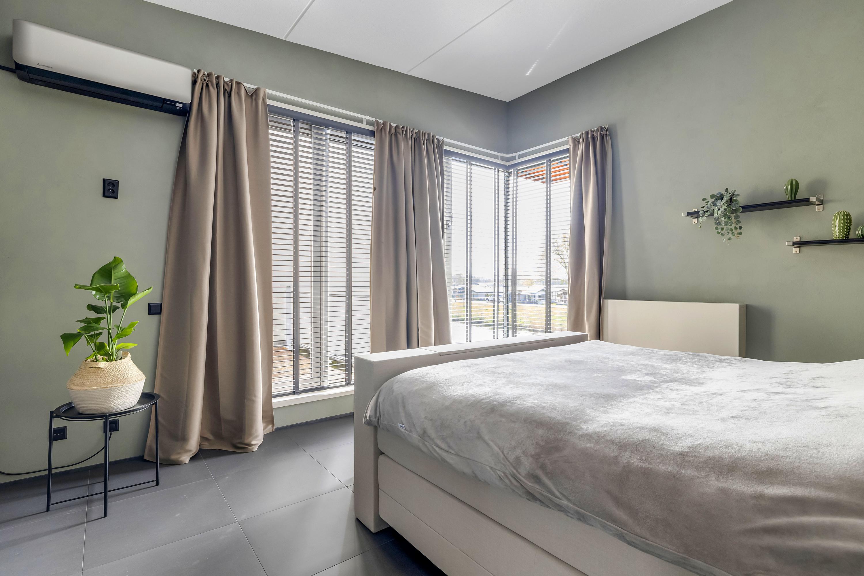De overloop geeft toegang tot 2 ruime slaapkamers en de luxe badkamer. De royale hoofdslaapkamer aan de achterzijde biedt een prachtig uitzicht over de haven en is voorzien van een vaste kast en airconditioning (2024) en heeft toegang tot het dakterras. De 2e slaapkamer ligt aan de voorzijde van de woning. De moderne badkamer (2022) is voorzien van een inloopdouche, ligbad, wastafelmeubel, designradiator en een hangend closet. Ook deze verdieping is afgewerkt met een nette plavuizenvloer.