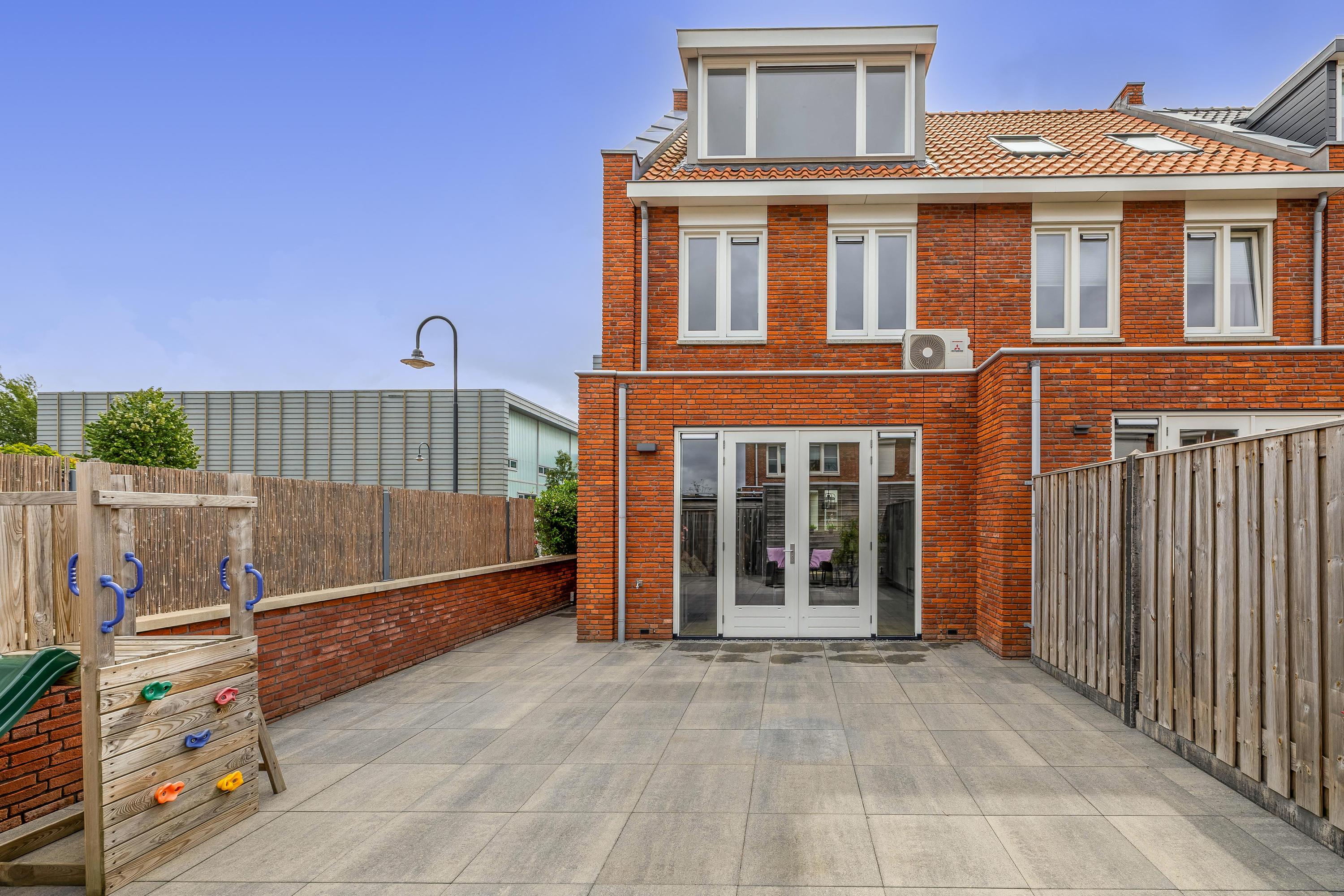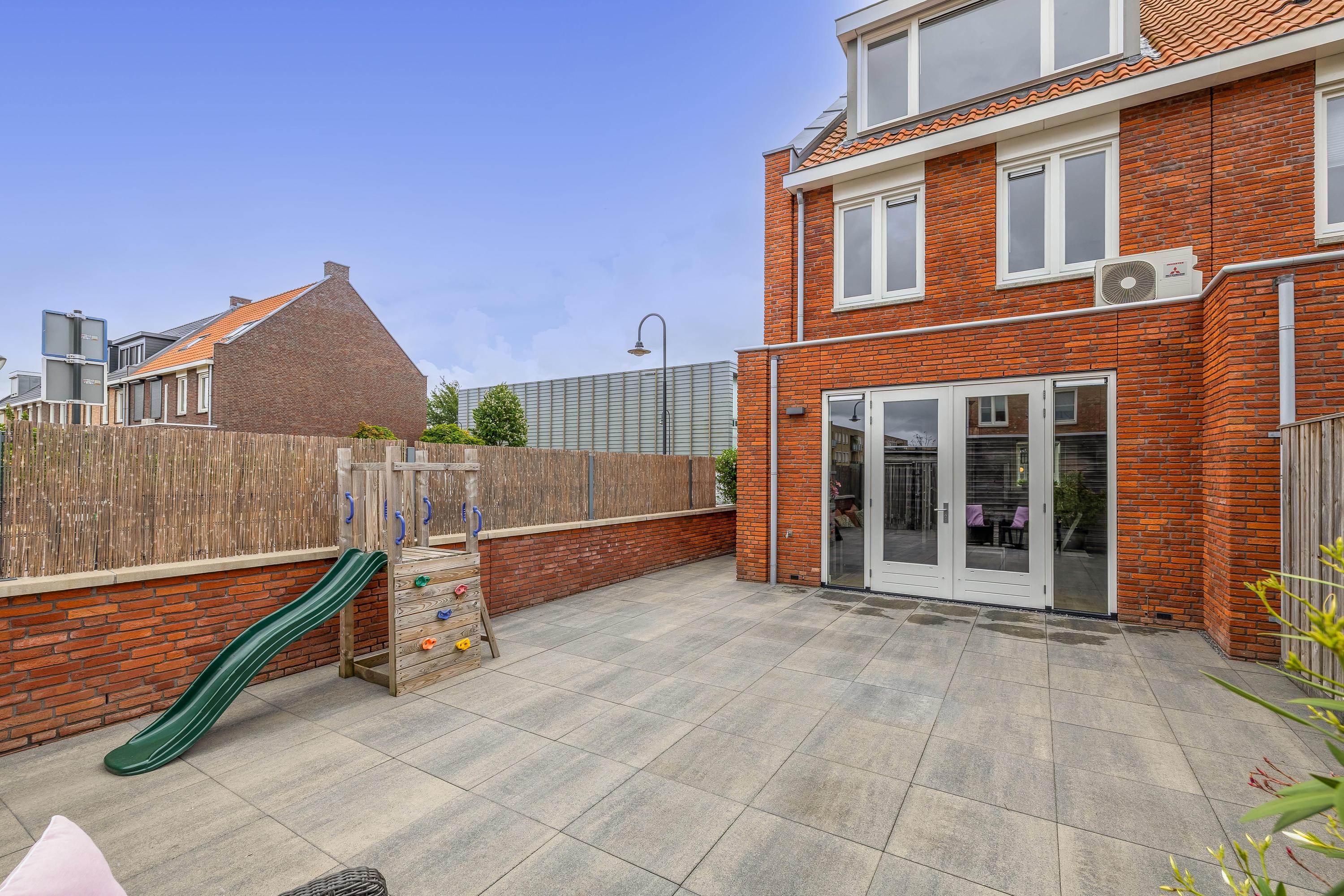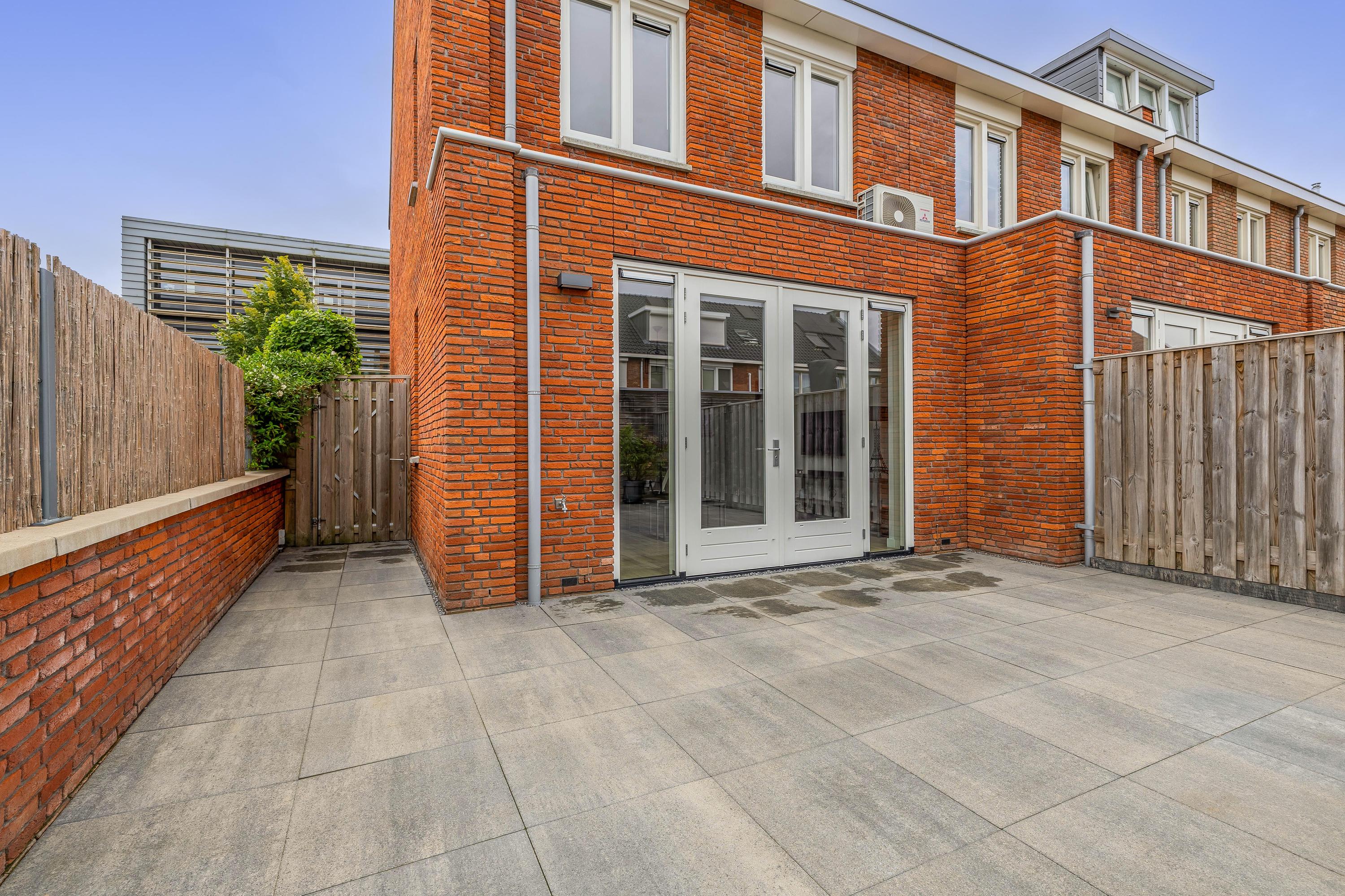 De voortuin is verzorgd en afgezet met betonnen paaltjes, zoals gebruikelijk in deze wijk (uniforme erfafscheiding). De achtertuin ligt op het noordoosten en is onderhoudsvriendelijk aangelegd met siertegels en heeft een buitenkraan en stroomvoorzieningspunten. Achterin staat een vrijstaande houten berging voorzien van elektra. De tuin is verder omringd door houten schuttingen en aan één zijde een gemetselde tuinmuur met bamboe, wat zorgt voor een aangename sfeer en privacy. Door de hoekligging is de tuin bovendien toegankelijk via twee poorten, wat extra gemak biedt.