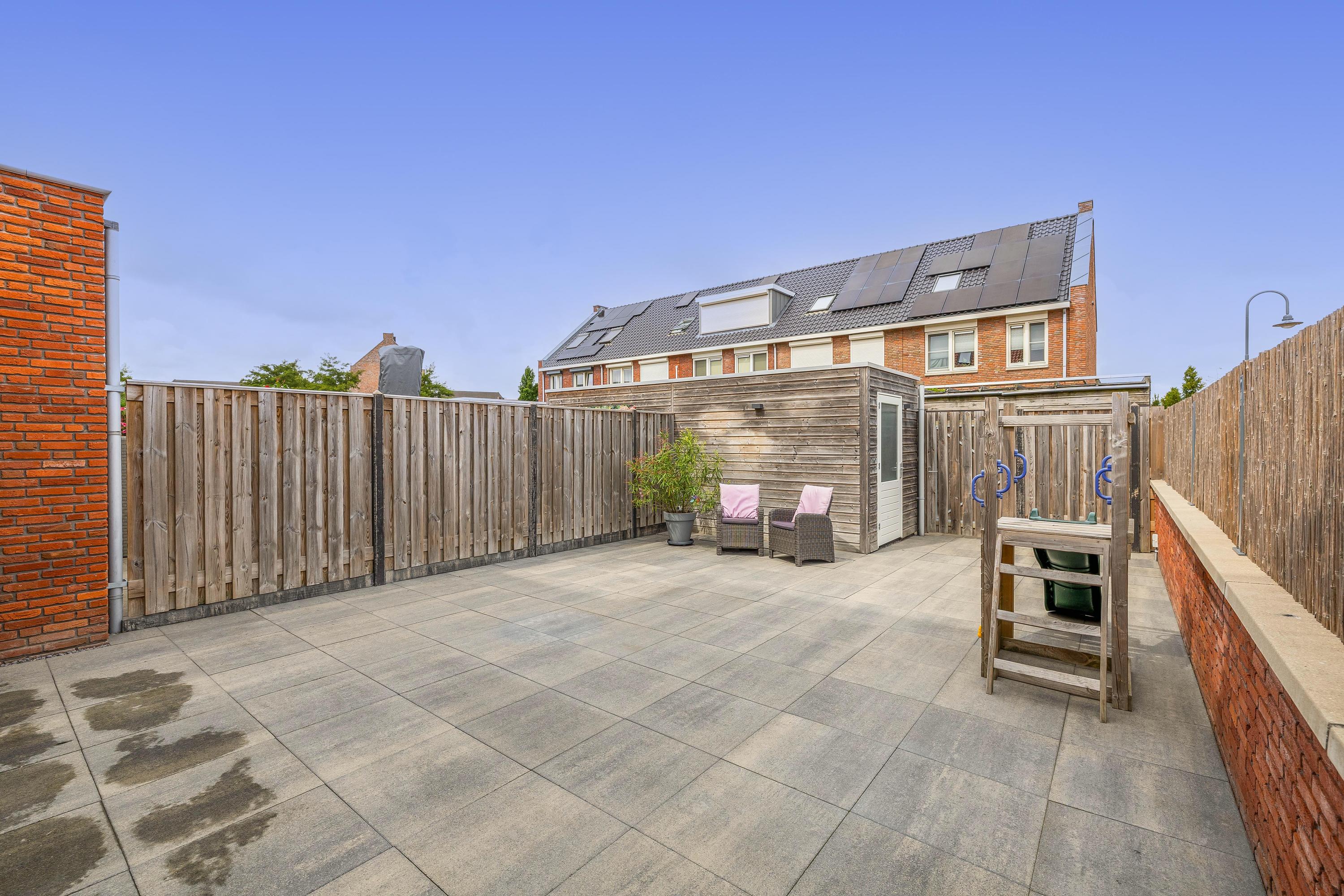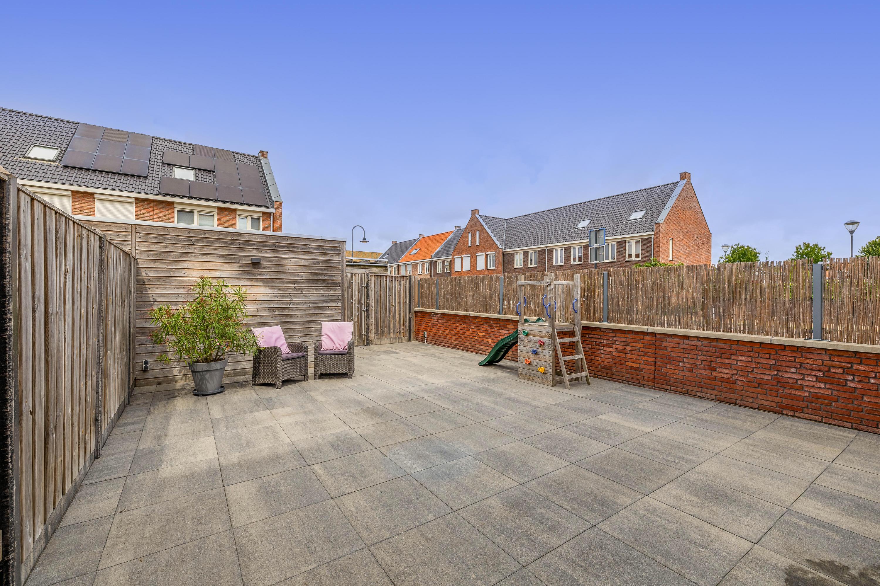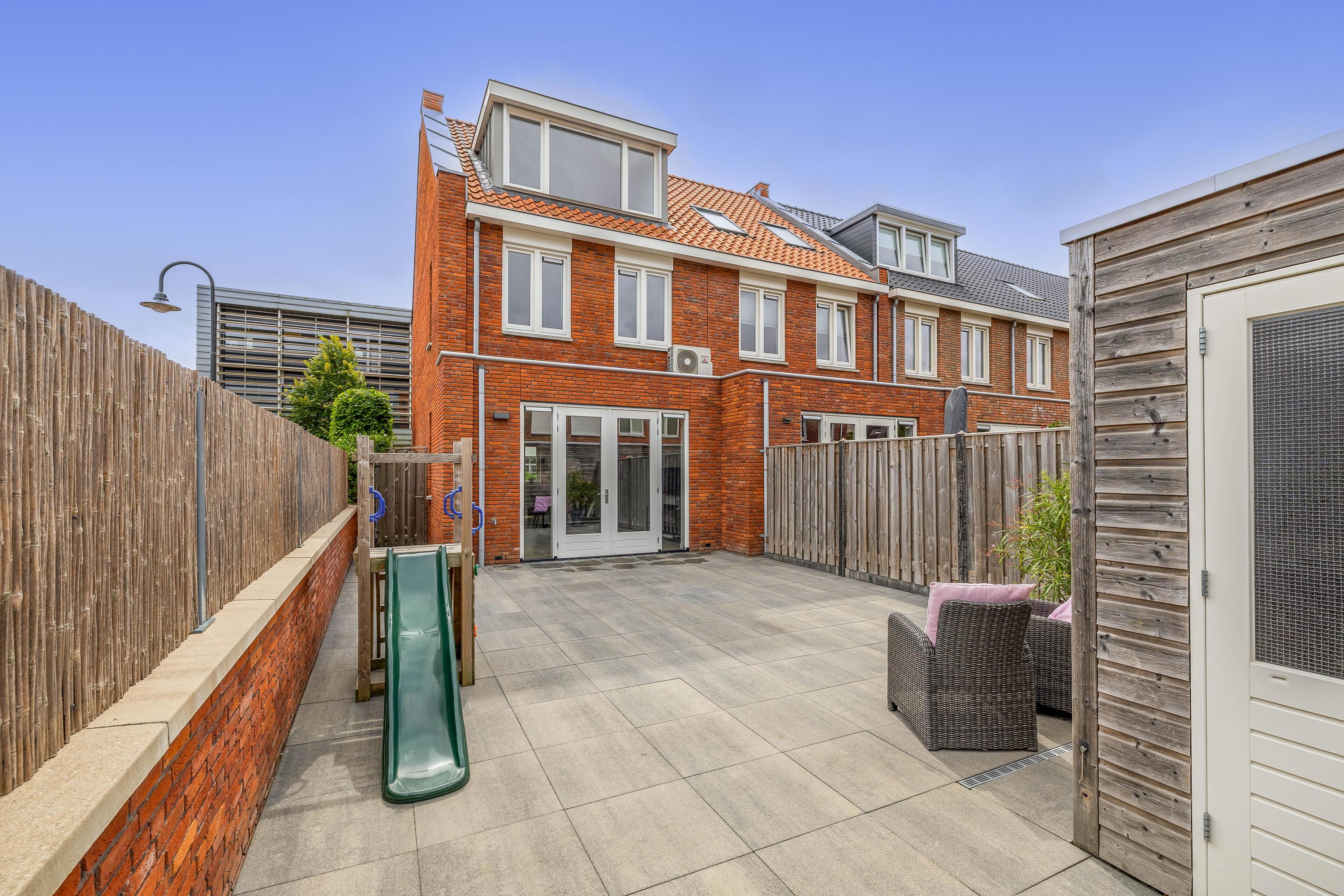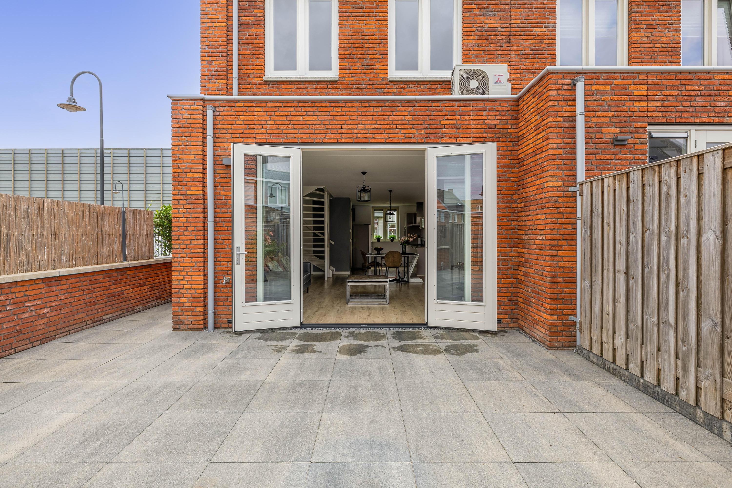 De voortuin is verzorgd en afgezet met betonnen paaltjes, zoals gebruikelijk in deze wijk (uniforme erfafscheiding). De achtertuin ligt op het noordoosten en is onderhoudsvriendelijk aangelegd met siertegels en heeft een buitenkraan en stroomvoorzieningspunten. Achterin staat een vrijstaande houten berging voorzien van elektra. De tuin is verder omringd door houten schuttingen en aan één zijde een gemetselde tuinmuur met bamboe, wat zorgt voor een aangename sfeer en privacy. Door de hoekligging is de tuin bovendien toegankelijk via twee poorten, wat extra gemak biedt.