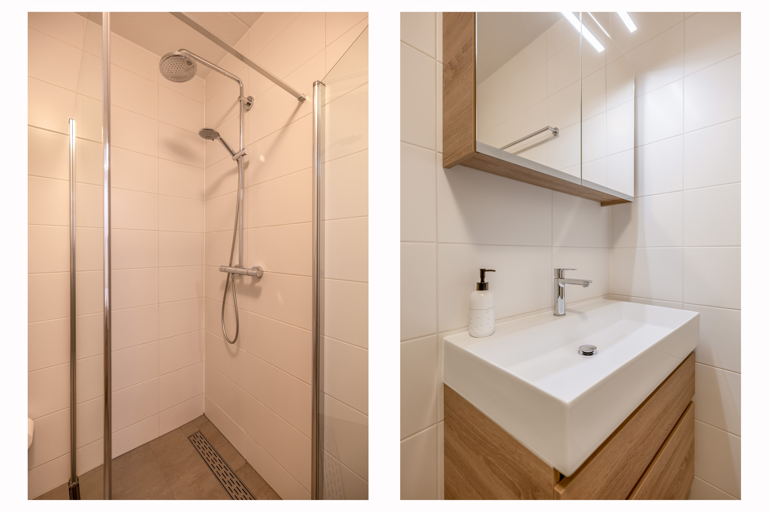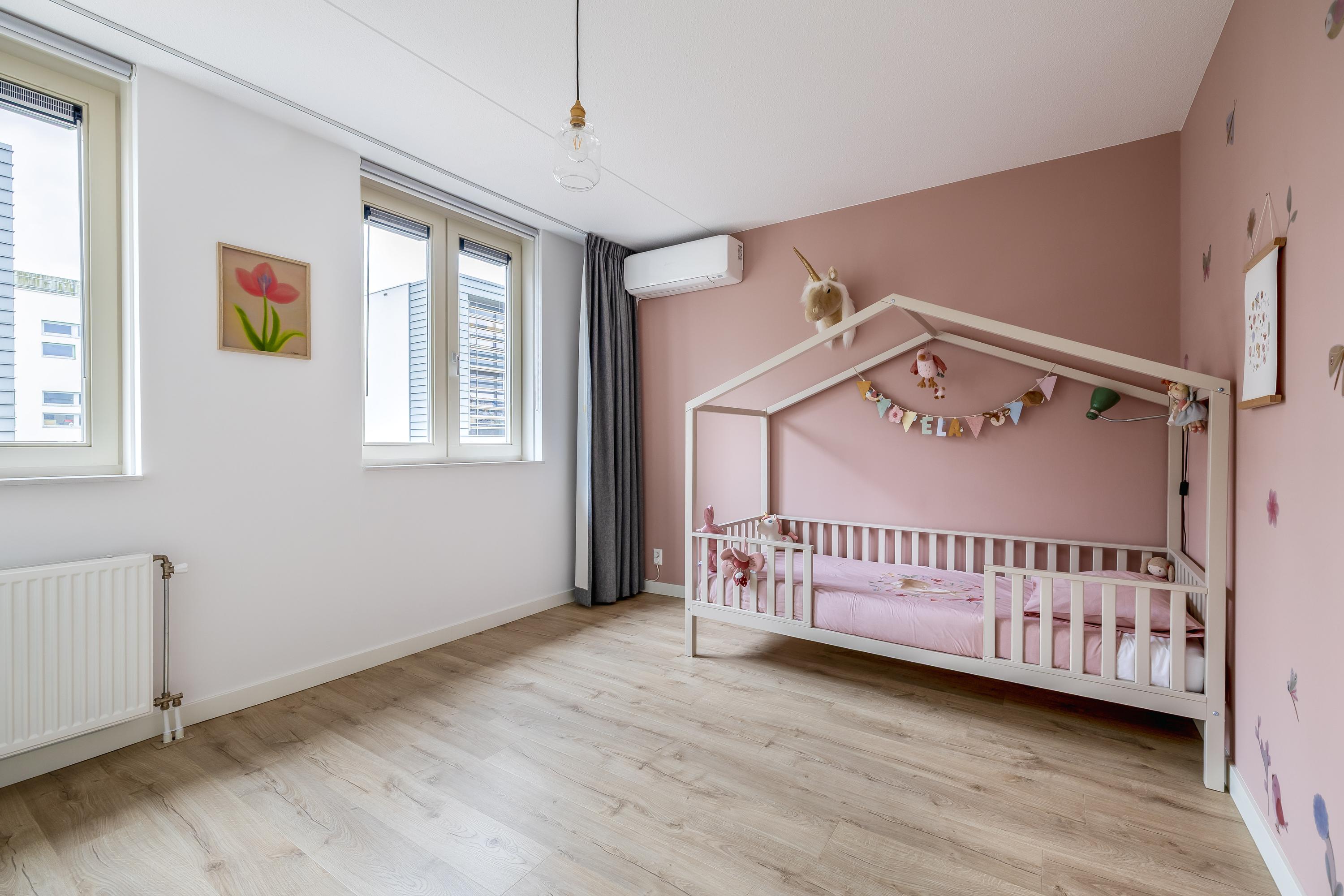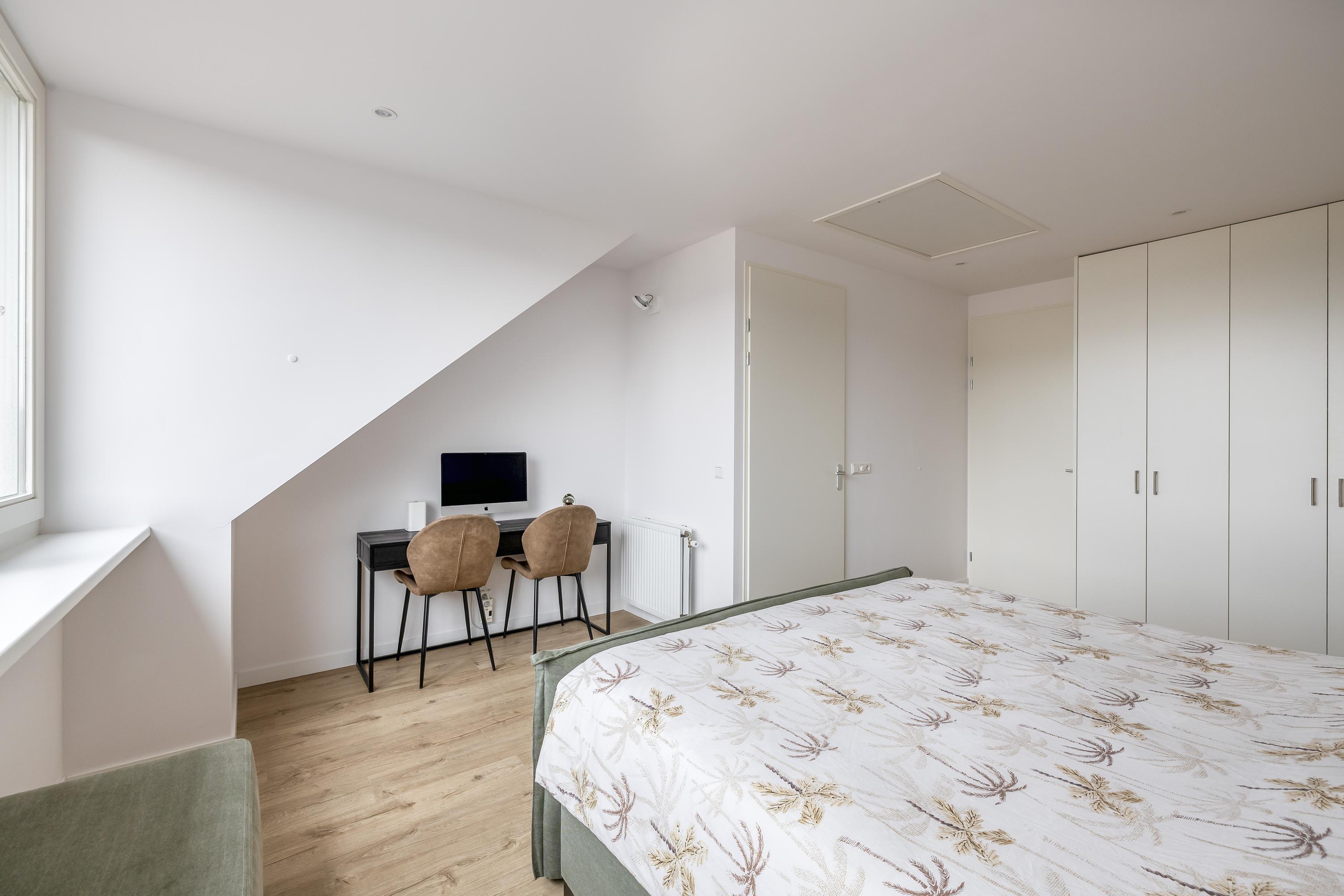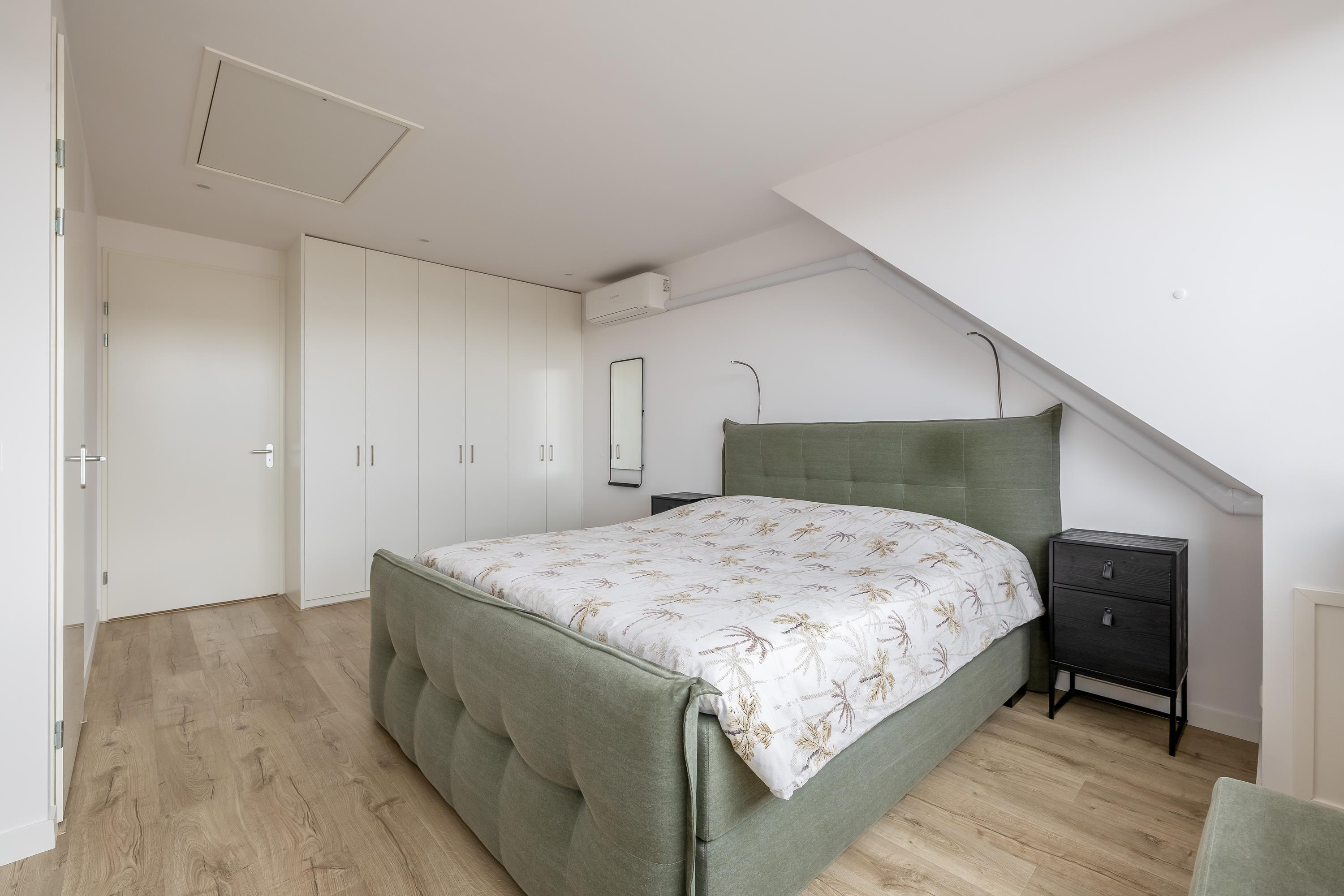 Op deze verdieping vind je twee ruime slaapkamers die beide de volle breedte van de woning beslaan. De kamer aan de voorzijde beschikt over een praktische vaste kastenwand en beide kamers zijn voorzien van airconditioning voor extra comfort. De moderne badkamer is compleet ingericht met een douchecabine, wastafelmeubel, hangend toilet en vloerverwarming. De gehele verdieping is netjes afgewerkt met een laminaatvloer.