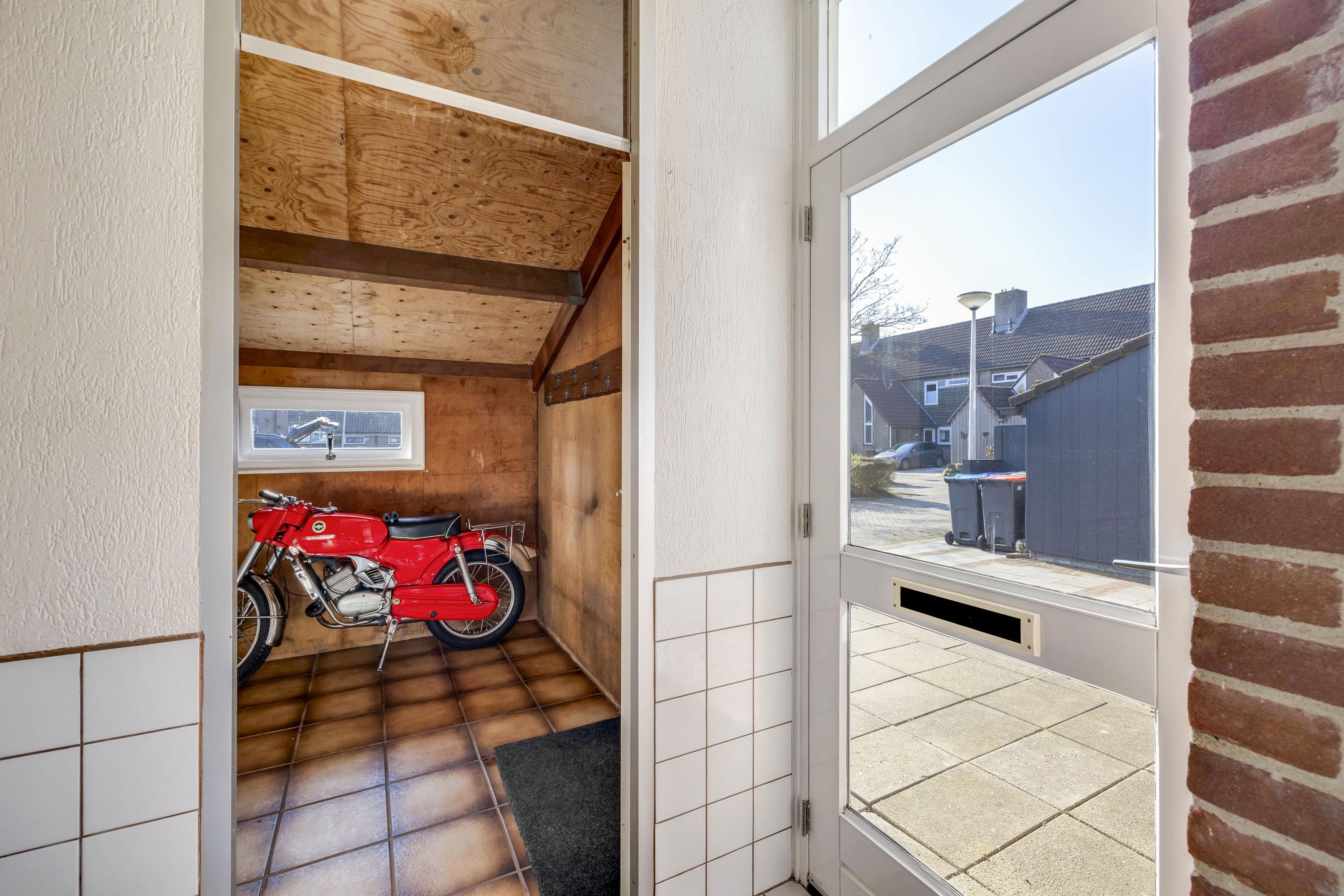 De bijkeuken gelegen aan de voorzijde is inpandig te bereiken en beschikt over een deur naar de oprit aan de voorzijde.