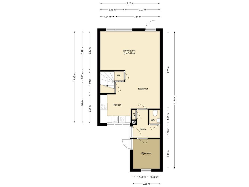 - aangebouwde bijkeuken voorzijde;