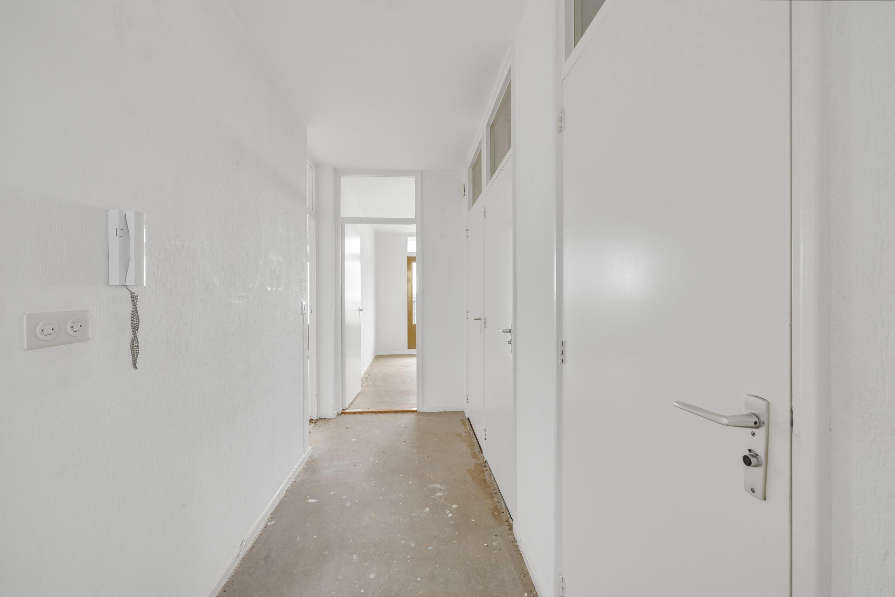 Aangekomen bij de entree van het complex, gelegen in de hoek van de voorzijde van het gebouw, betreed je de nette, gezamenlijke entree met de brievenbussen en het bellentableau die toegang geeft tot de centrale hal. Vanuit de hal bereik je eenvoudig het trappenhuis, de liften en de kelderruimte.