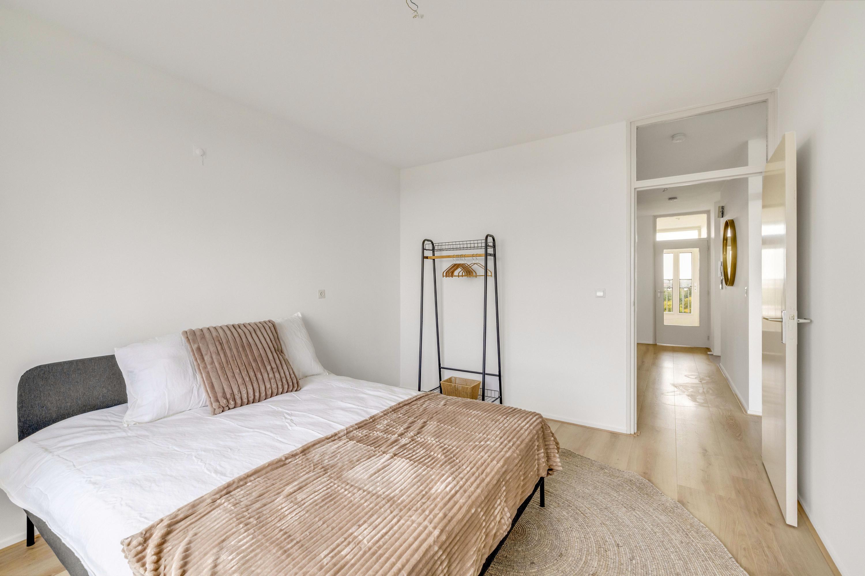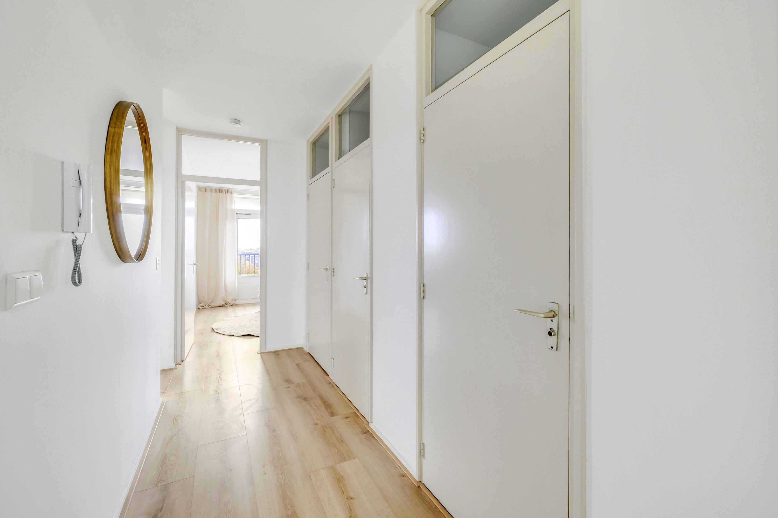 Je betreedt dit appartement via de galerij van het complex, waarbij je direct naast de voordeur de meterkast vindt. Vanuit de entree stap je de hal van het appartement binnen, waar direct aan de voorzijde de keuken is gesitueerd. Deze is voorzien van voldoende werk- en opbergruimte, een elektrische boiler voor de warm water voorziening én inbouwapparatuur zoals een kookplaat met afzuigkap, koel- vriescombinatie, combi-magnetron en een vaatwasser. Ook liggen aan de voorzijde twee slaapkamers met vaste kastruimten, ook ideaal om te gebruiken als kastenkamer, werkkamer of hobbyruimte. Verder bevinden zich in de hal ook de toiletruimte en de badkamer, netjes ingericht met een inloopdouche, designradiator en wastafel. De royale woonkamer ligt aan de achterzijde van het appartement en is dankzij de grote raampartijen heerlijk licht. De woonkamer heeft vaste kastruimte en je hebt direct toegang tot het zonnige balkon van 11 m² op het zuidoosten, waar je optimaal kunt genieten van de ochtend- en middagt zon. Ook ligt aan de achterzijde de 3e slaapkamer, eveneens voorzien van grote ramen en een deur naar het balkon, waardoor ook hier veel natuurlijk licht binnenkomt.