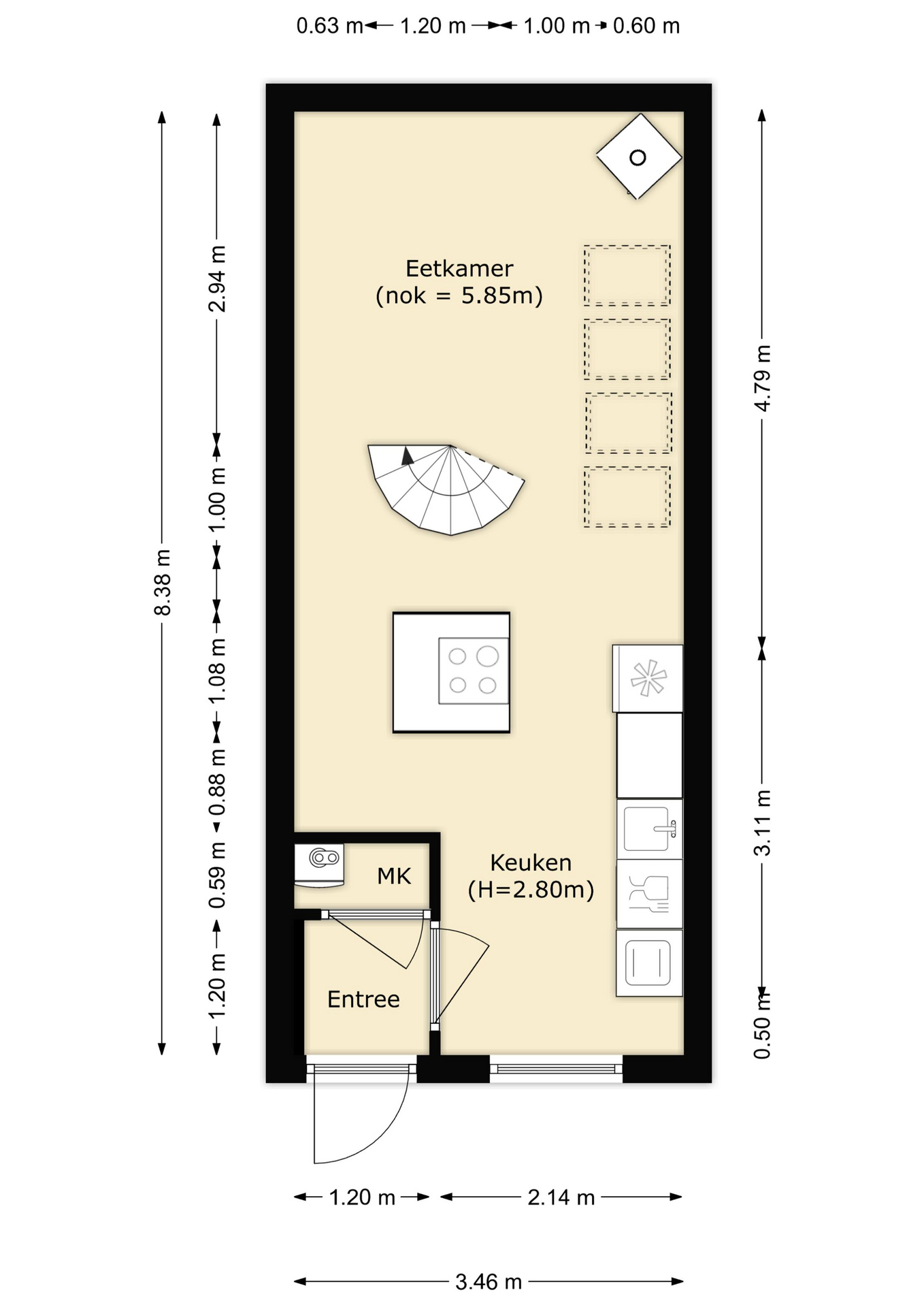Deze informatie is door Van Ravens Makelaardij met de nodige zorgvuldigheid samengesteld. De informatie is echter van algemene aard en niet meer dan een uitnodiging om in onderhandeling te treden. Onzerzijds wordt echter geen enkele aansprakelijkheid aanvaard voor enige onvolledigheid, onjuistheid of anderszins, dan wel de gevolgen daarvan. Alle opgegeven maten en oppervlakten zijn indicatief.