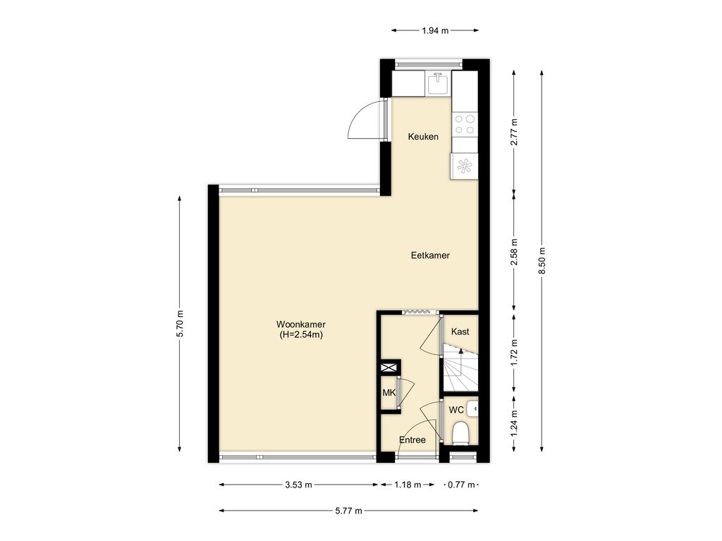 Deze informatie is door De Vreij Makelaardij met de nodige zorgvuldigheid samengesteld. De informatie is echter van algemene aard en niet meer dan een uitnodiging om in onderhandeling te treden. Onzerzijds en verkoper wordt echter geen enkele aansprakelijkheid aanvaard door enige onvolledigheid, onjuistheid of anderszins, dan wel de gevolgen daarvan. De meetinstructie is gebaseerd op de NEN2580. De meetinstructie is bedoeld om een meer eenduidige manier van meten toe te passen voor het geven van een indicatie van de gebruiksoppervlakte. De meetinstructie sluit verschillen in meetuitkomsten niet volledig uit, door bijvoorbeeld interpretatieverschillen, afrondingen of beperkingen bij het uitvoeren van de meting. Van toepassing zijn de Vastgoed Ned voorwaarden.