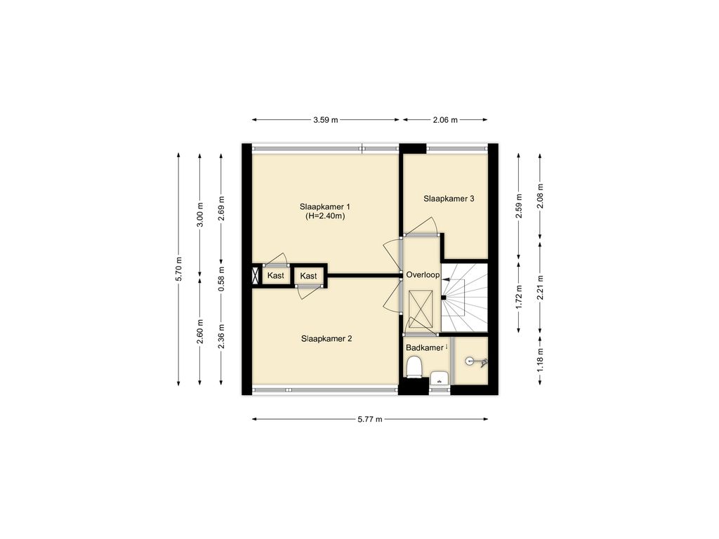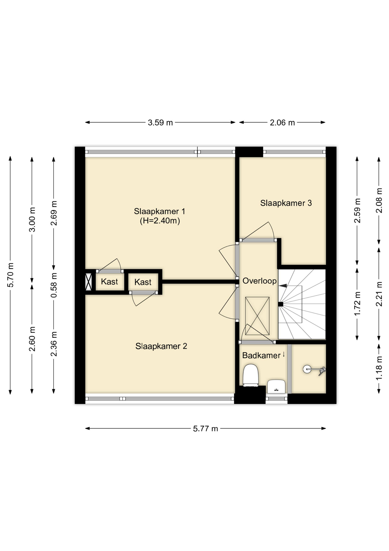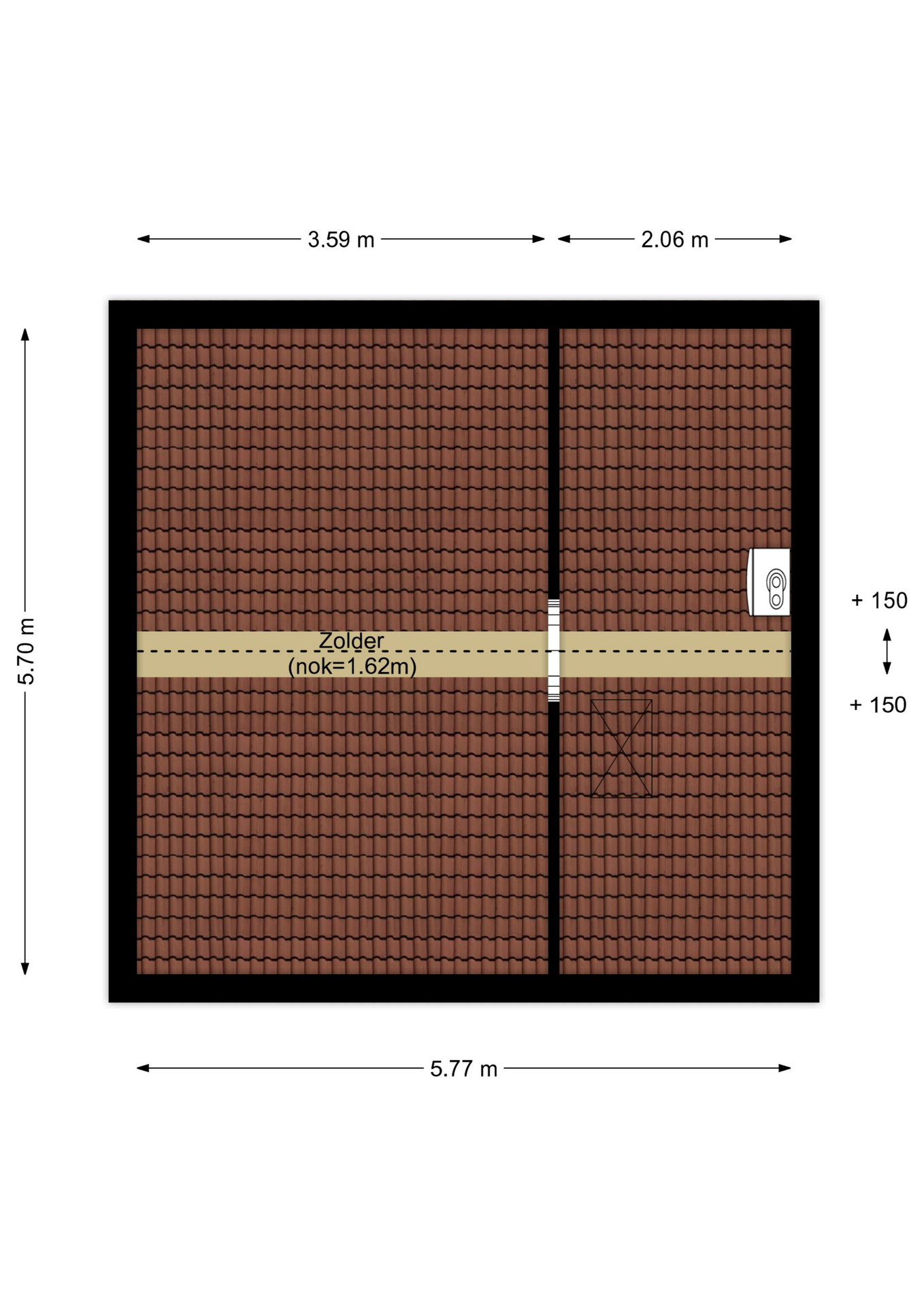 Via vlizotrap bereikbare bergruimte met de opstelplaats cv-ketel. Middels een nokverhoging is een extra kamer mogelijk.