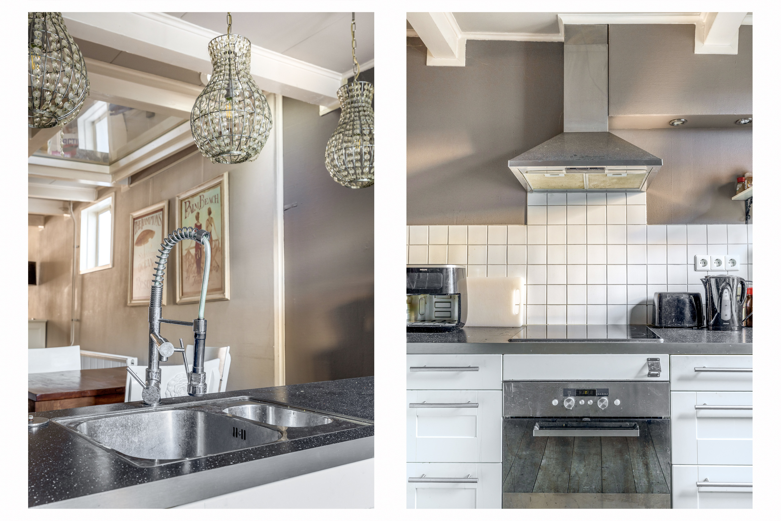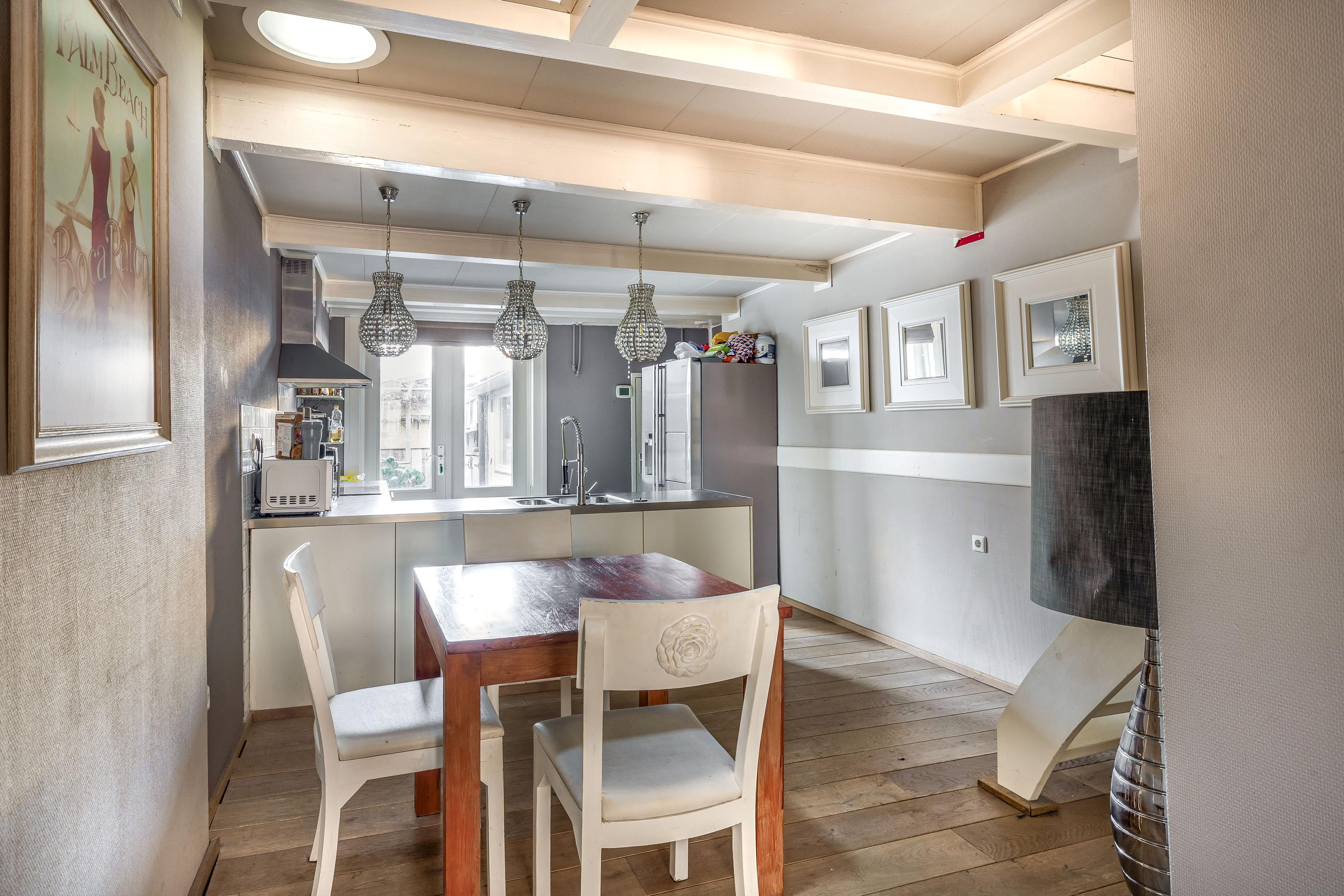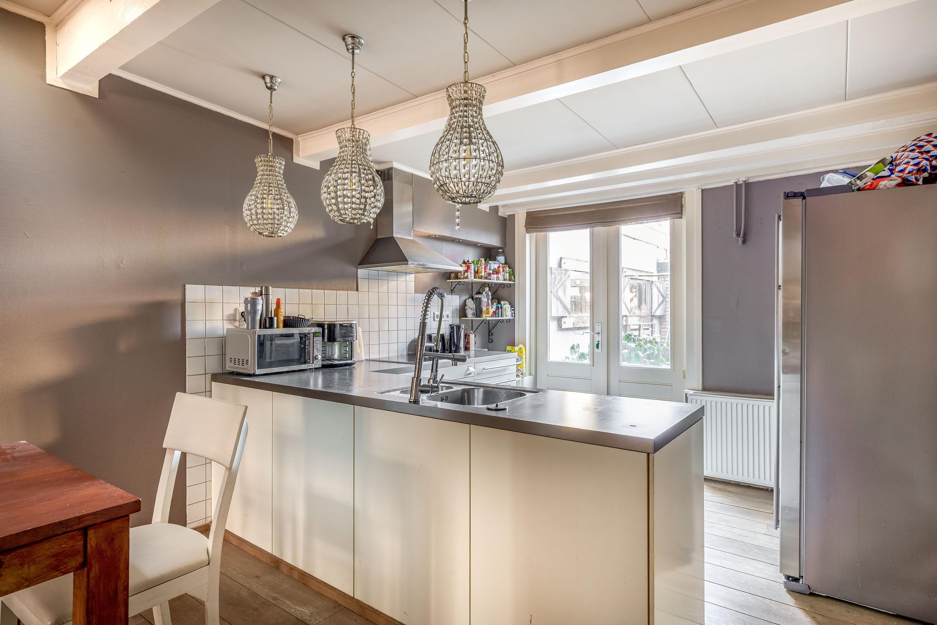 Via de entree met de meterkast betreed je de sfeervolle woonkamer aan de voorzijde. De ruimte kenmerkt zich door het originele balkenplafond, eikenhouten vloerdelen en extra daglicht dankzij een solartube. Vanuit de woonkamer loop je door naar de ruime woonkeuken aan de achterzijde, uitgevoerd in een hoekopstelling (gedateerd) en voorzien van een spoelunit, vaatwasmachine, oven, afzuigkap, kookplaat, koel- en vriescombinatie. Hier zit ook een solartube en openslaande deuren die naar de achtertuin leiden. Aansluitend ligt de bijkeuken/berging met wasmachineaansluiting en de opstelling van cv-combiketel (Remeha, 2012). Bij de keuken bevindt zich tevens de trap naar de eerste verdieping met daarnaast met de badkamer voorzien van douchecabine, dubbele wastafel met meubel, vloerverwarming, hangend closet en een designradiator.
