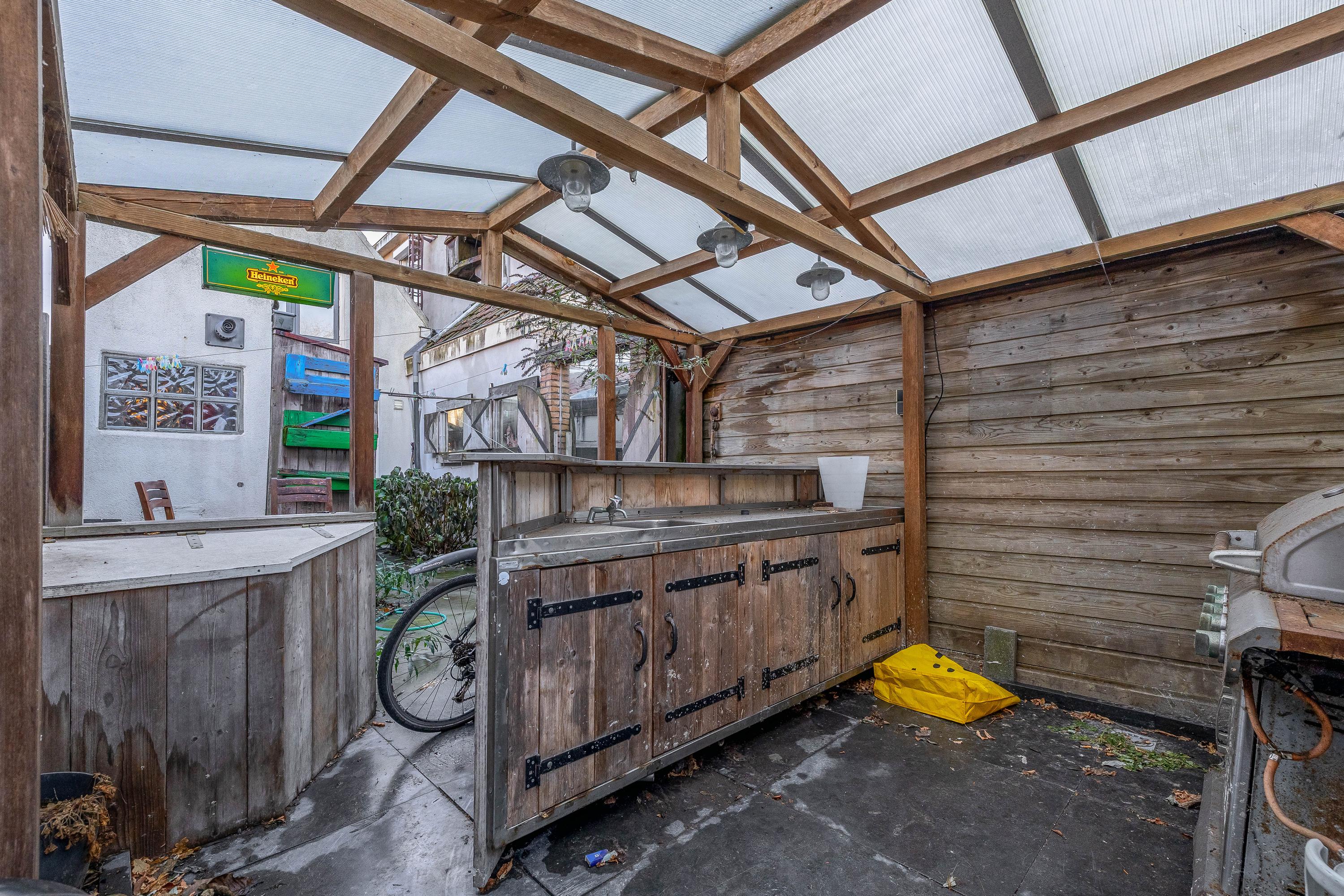 De achtertuin is gelegen op het noordwesten. De tuin is voorzien van sierbestrating, een achterom en een overdekte buitenbar. Kortom een fijne plek om te ontspannen of gasten te ontvangen.
