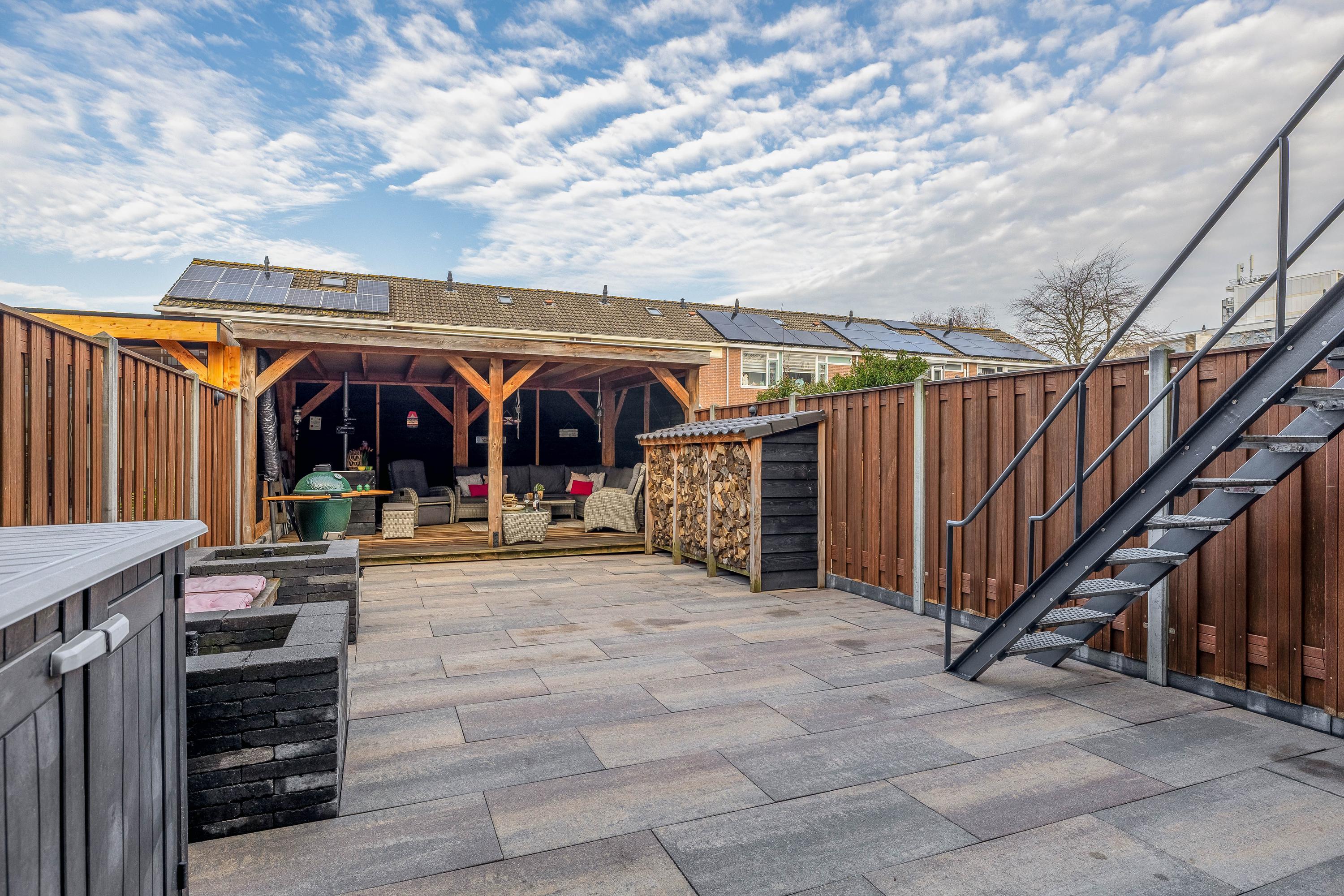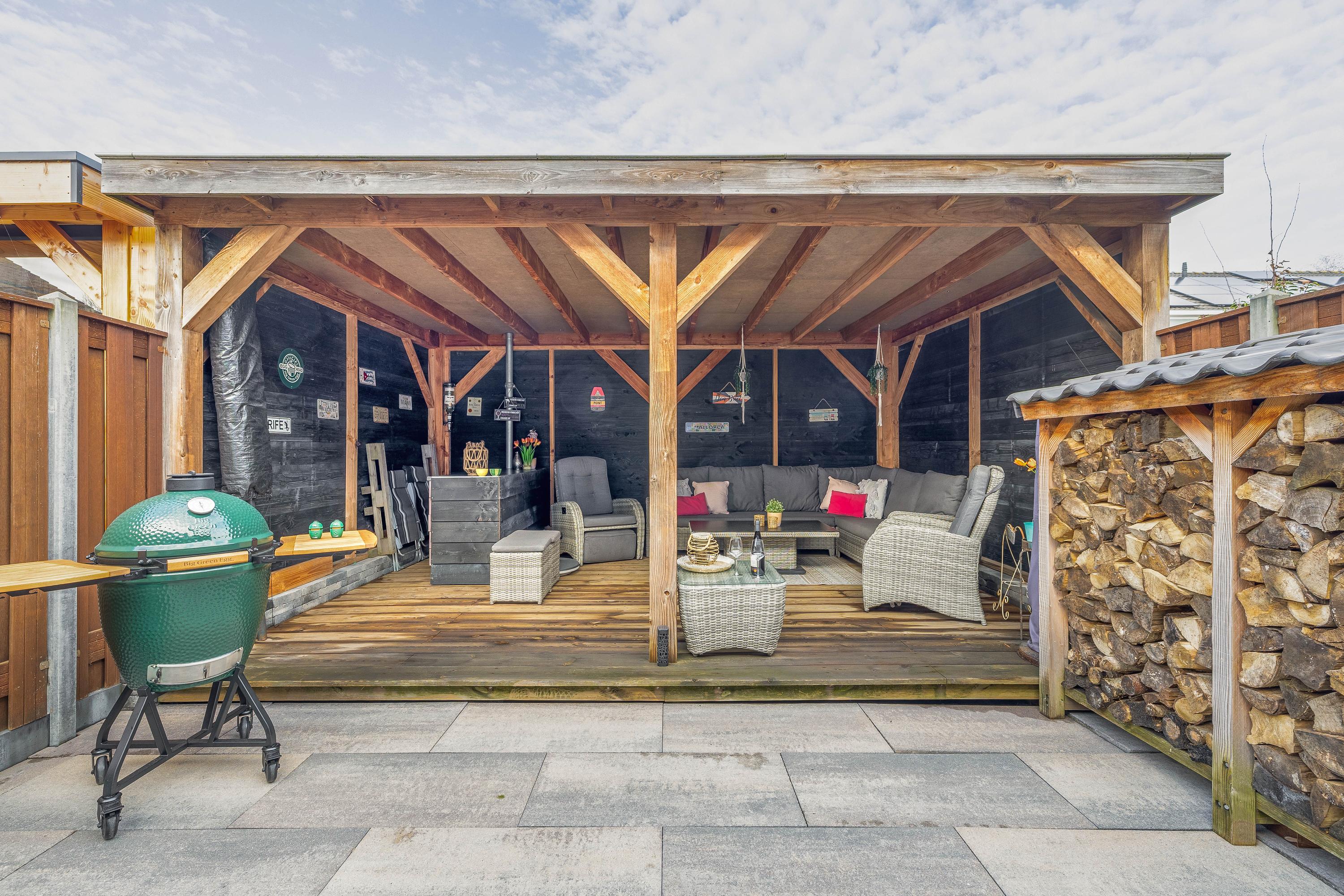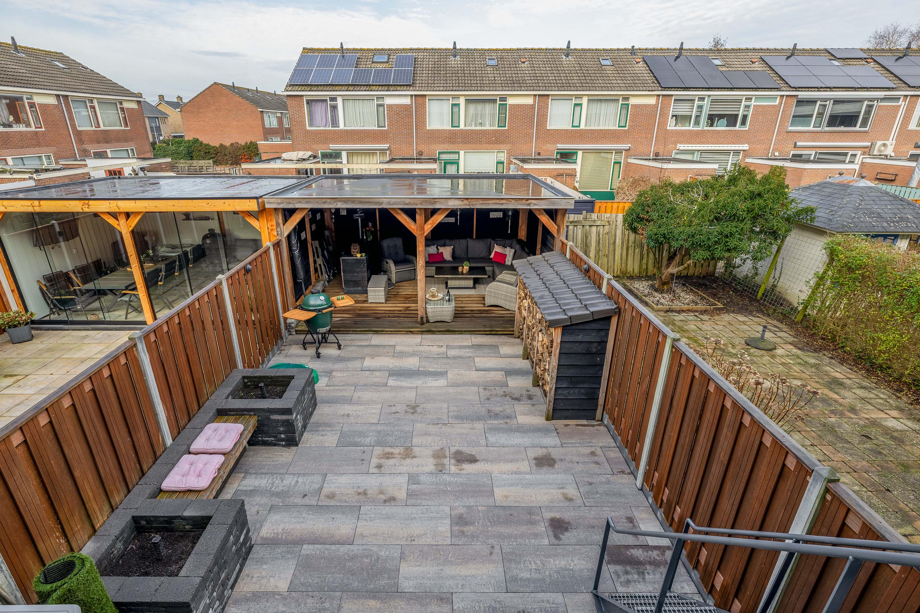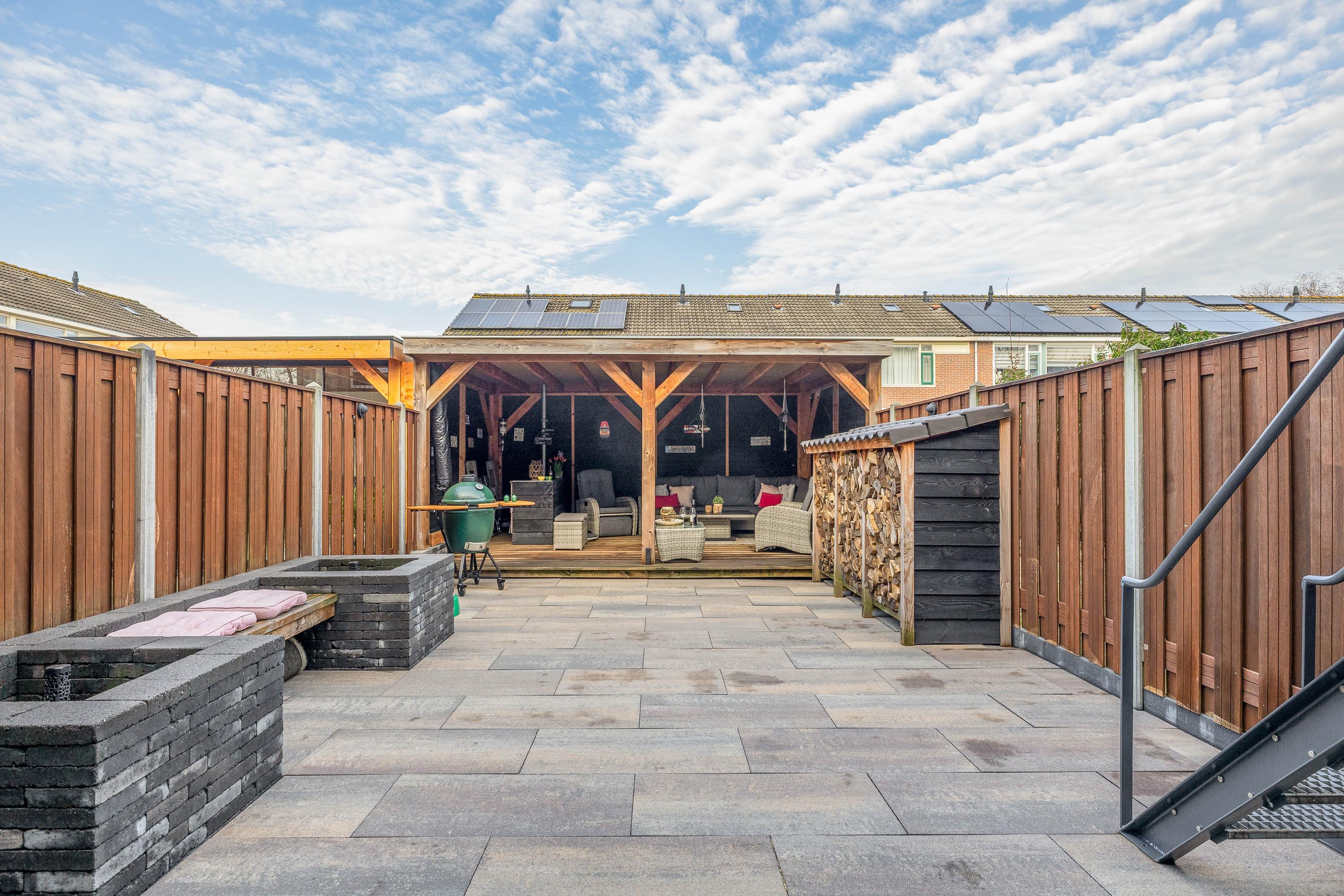 De voortuin netjes aangelegd en betegeld. De achtertuin is goed verzorgd en biedt een fijne combinatie van functionaliteit en ontspanning. De tuin is voorzien van schuttingen en een sfeervolle veranda, voorzien van elektra.