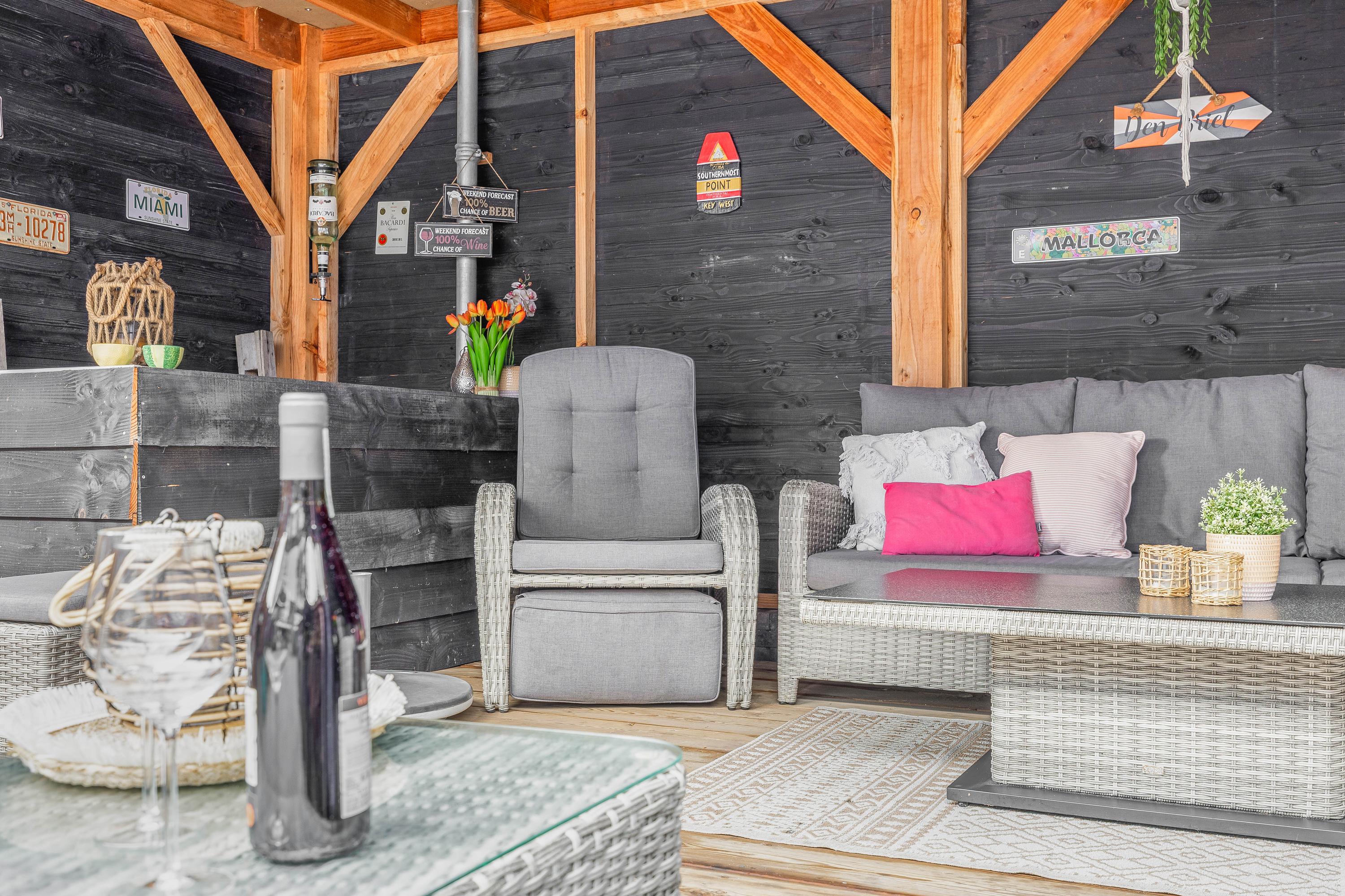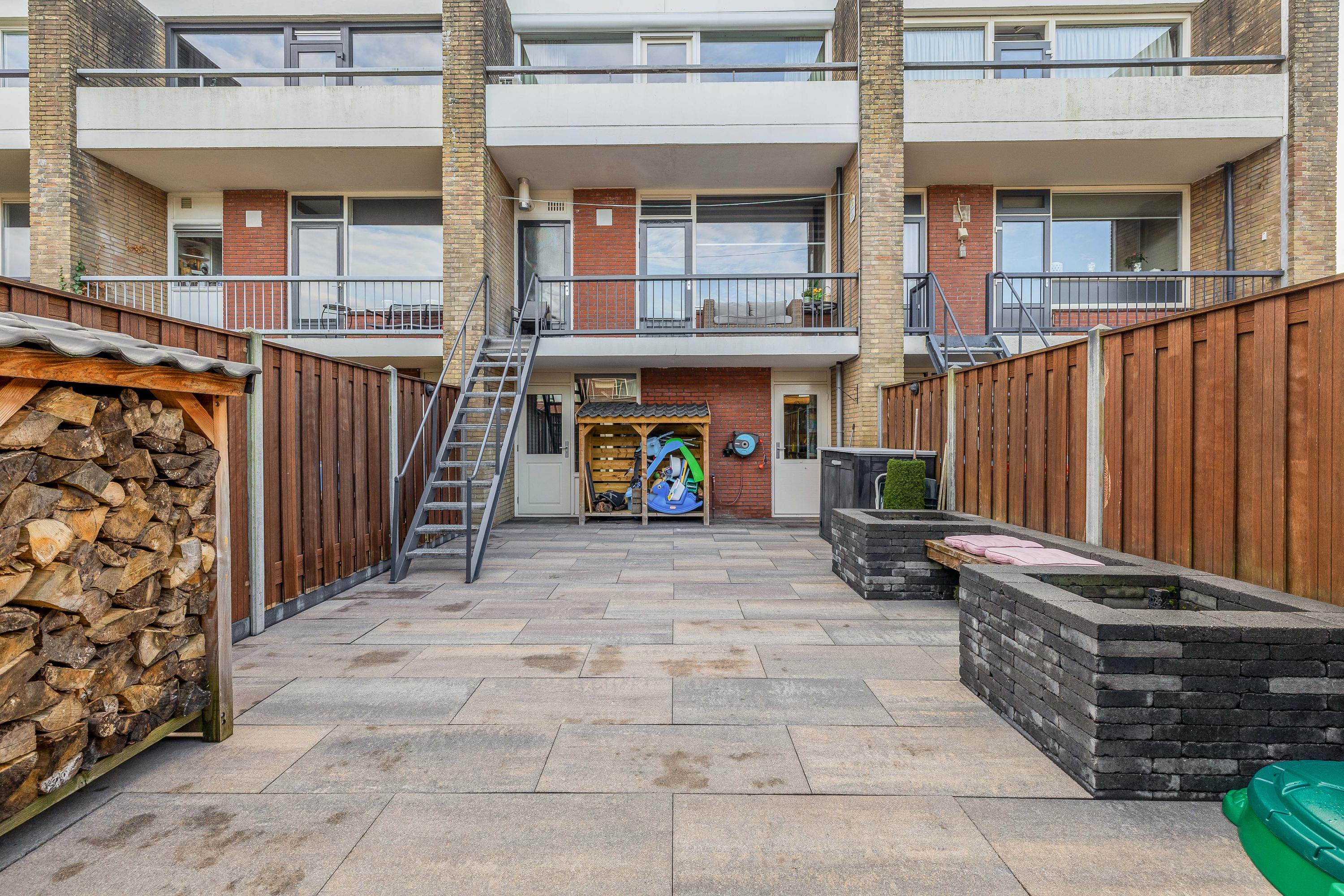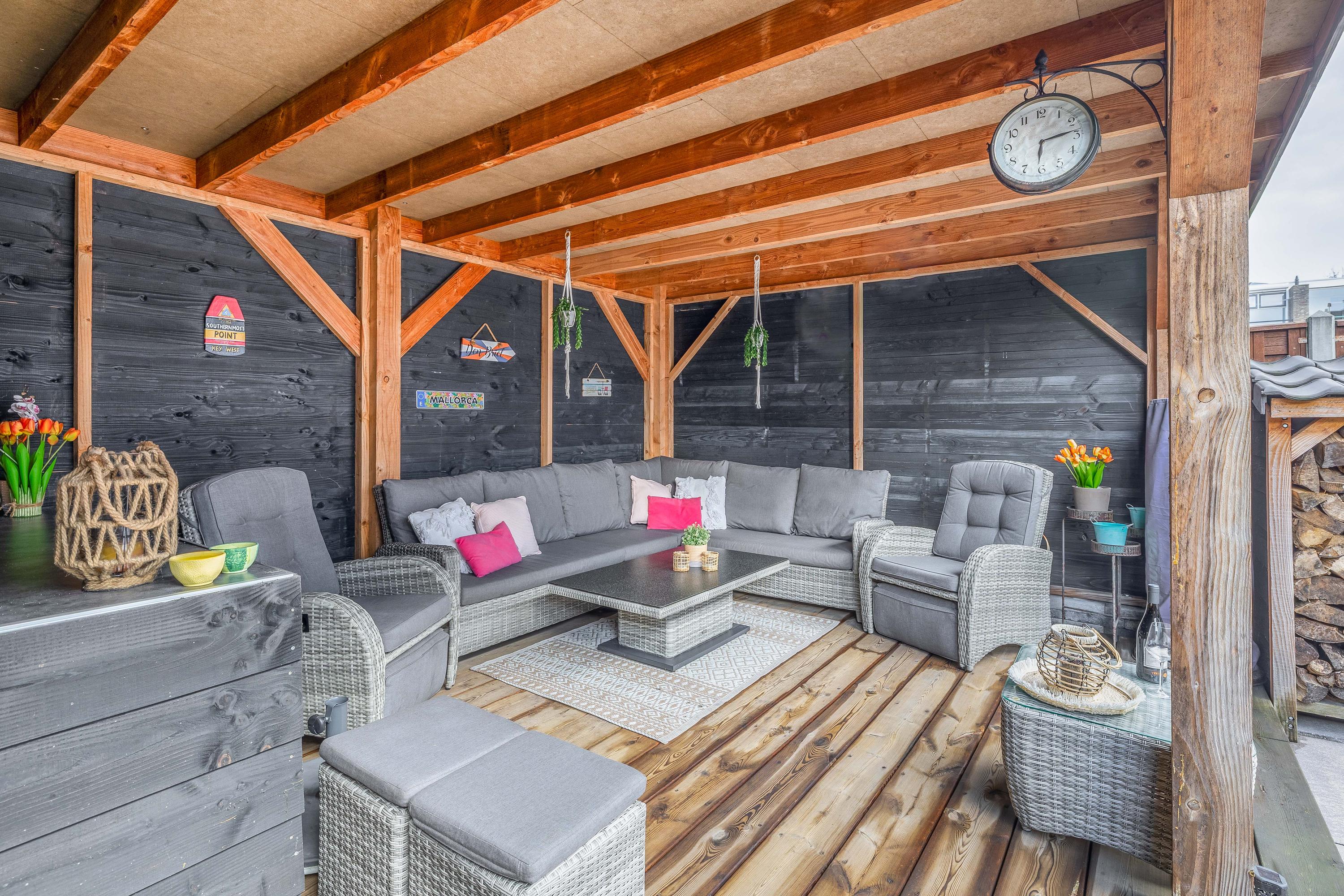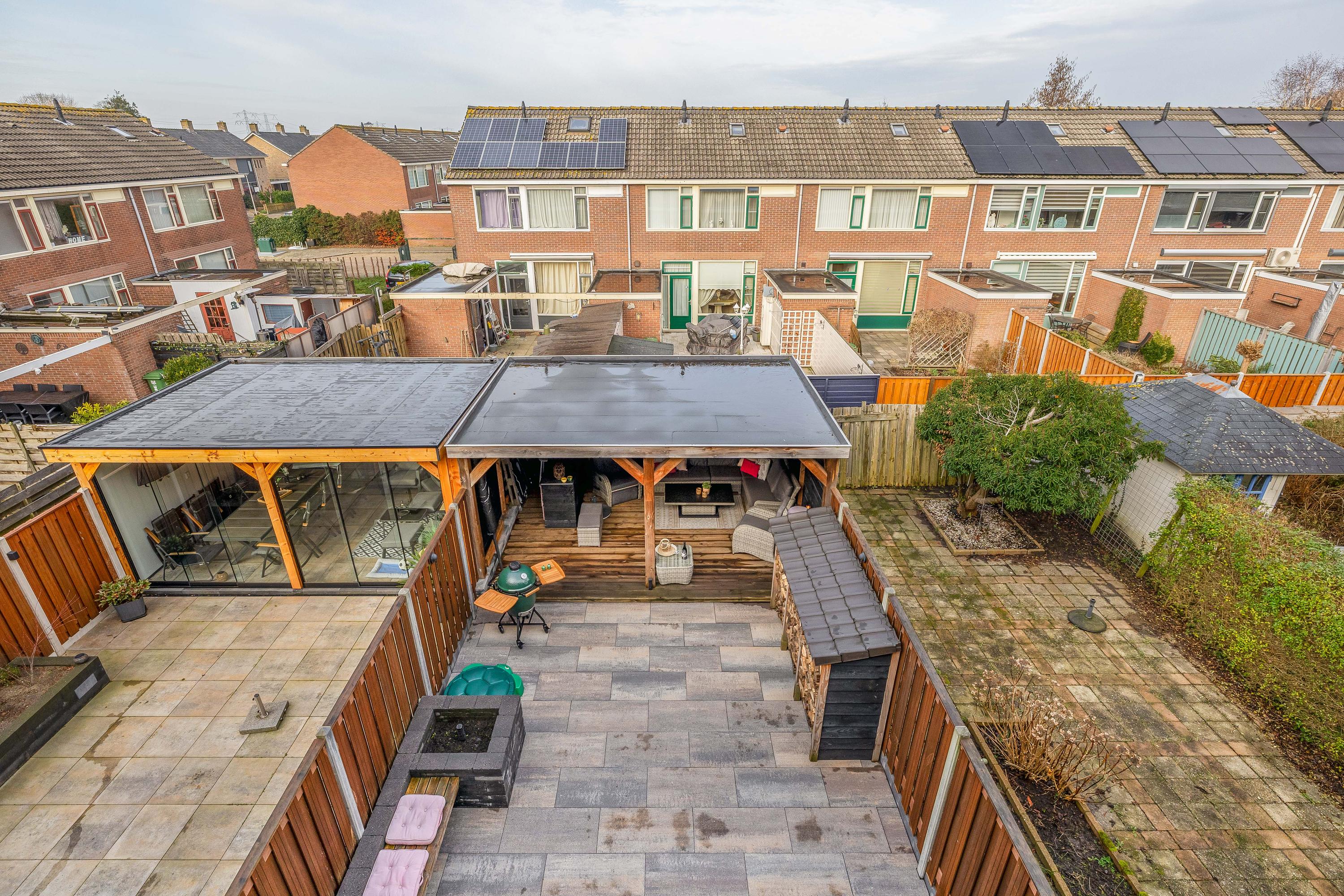De voortuin netjes aangelegd en betegeld. De achtertuin is goed verzorgd en biedt een fijne combinatie van functionaliteit en ontspanning. De tuin is voorzien van schuttingen en een sfeervolle veranda, voorzien van elektra.